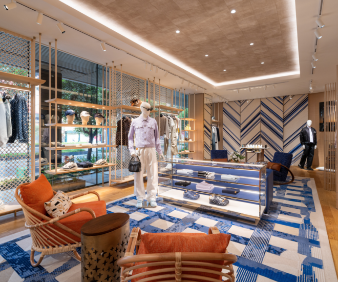 Không gian Louis Vuitton Art of Travel tại Saigon Centre được thiết kế dành riêng cho nam giới, ngoài việc tôn vinh bản sắc bản địa Việt Nam, đồng thời còn phản ánh vẻ đẹp nam tính quốc tế lịch lãm, hiện đại ngày nay.