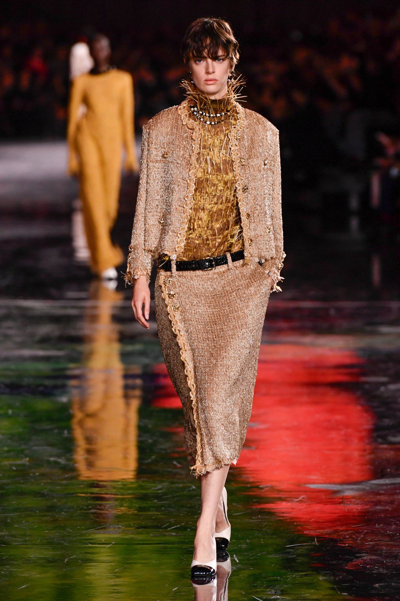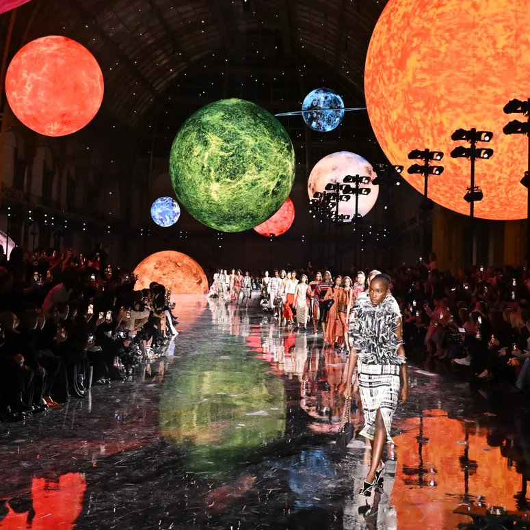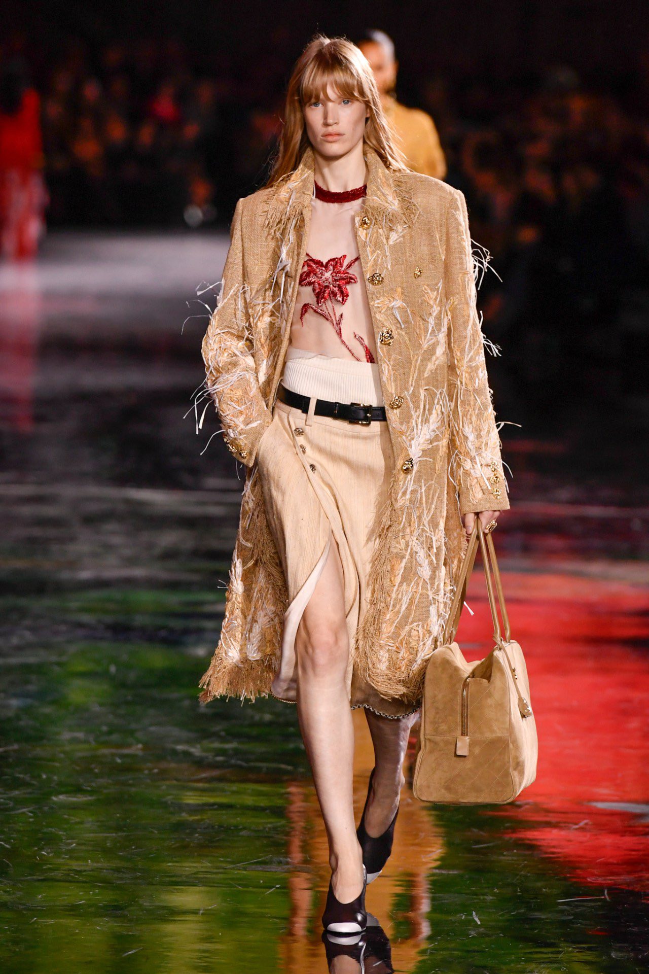 Matthieu Blazy và show diễn debut Chanel đã trở thành một bài học (cả về thời trang lẫn dàn dựng sân khấu). “Tôi muốn tạo nên điều gì đó vừa quen thuộc như một giấc mơ, vừa vượt thời gian. Tôi bị cuốn hút bởi vũ trụ của các vì sao — một chủ đề luôn gắn bó sâu sắc với Maison,” Blazy chia sẻ. “Tất cả chúng ta đều ngước nhìn cùng một bầu trời, và theo tôi, nó khơi dậy trong mỗi người những cảm xúc giống nhau.” Phần dàn dựng sân khấu ngoạn mục được thực hiện bởi đội ngũ Bureau Betak.