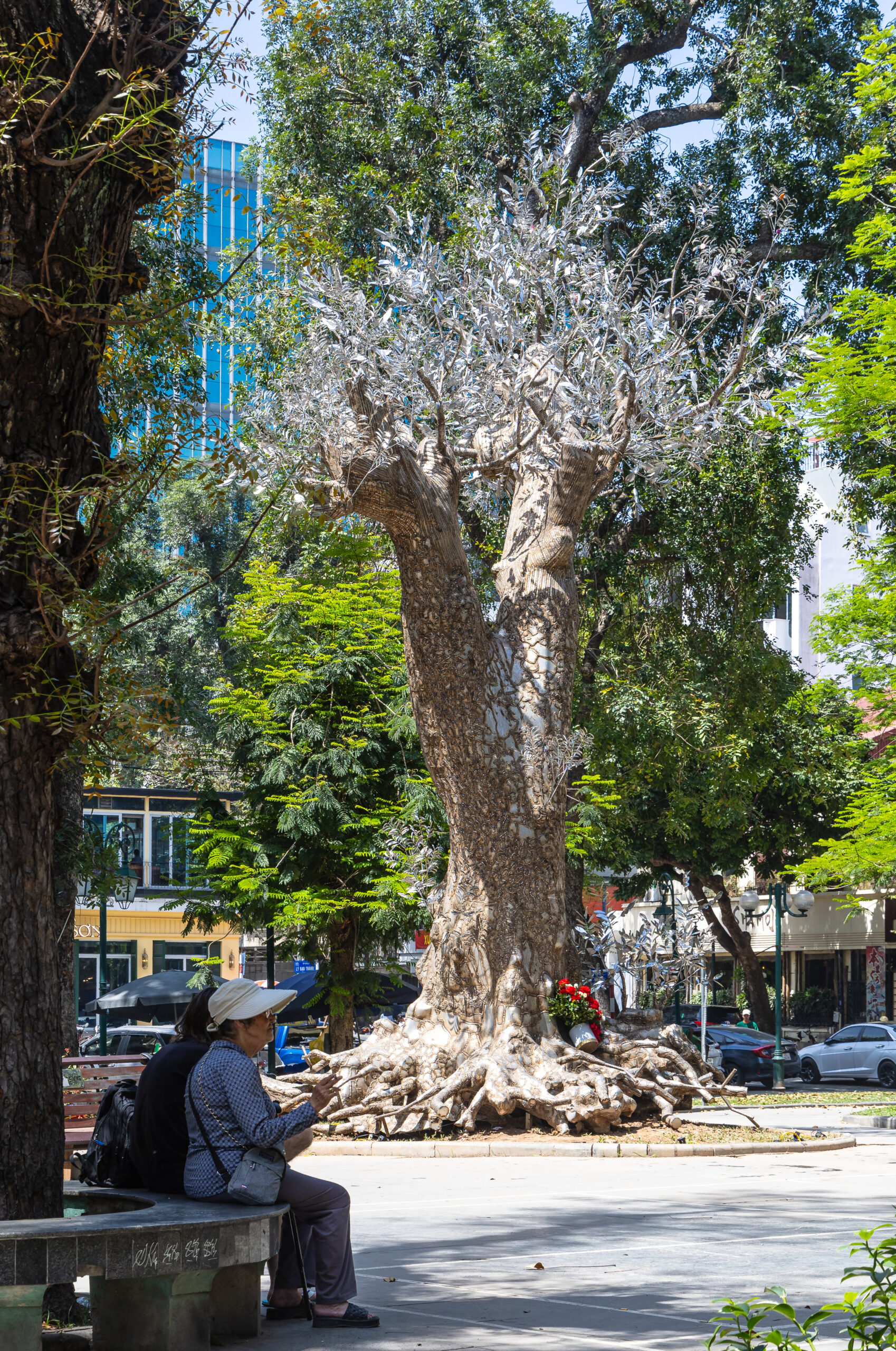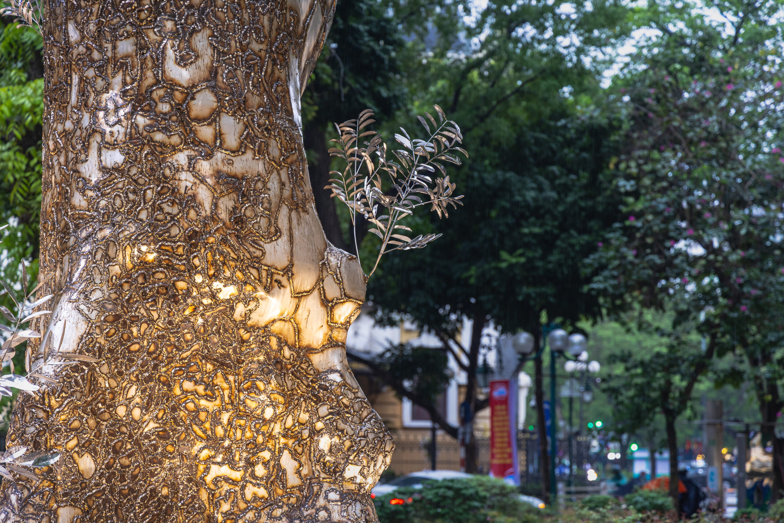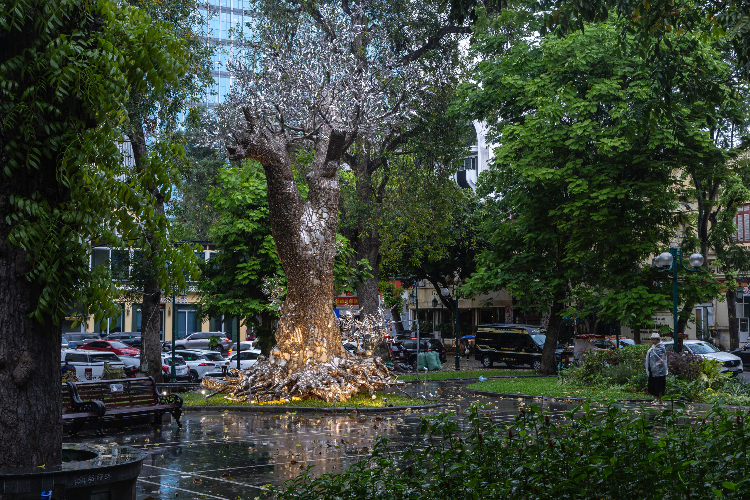 Một cây xà cừ 70 tuổi, được xem là chứng nhân lịch sử của thủ đô Hà Nội, từng ngã xuống vì sự tàn phá của cơn bão Yagi vào năm ngoái, nay đã kiên cường “Hồi Sinh”, trong “lớp áo mới” được “may” bởi nghệ sĩ Tia-Thủy Nguyễn.