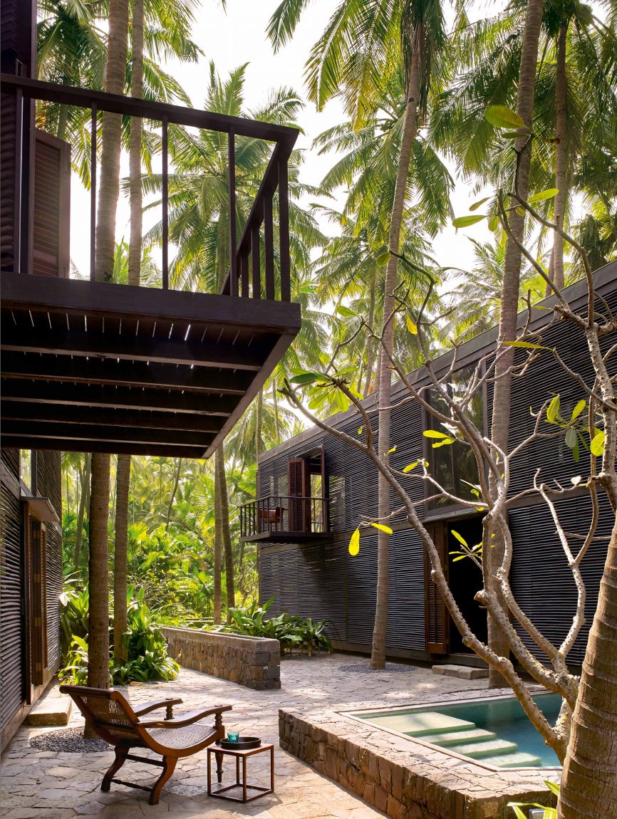 Palmyra House – một thiết kế của Bijoy Jain với hai khối nhà bê tông và gỗ. Nét đặc trưng của công trình là hệ tường lá sách bằng gỗ, giúp không gian sinh hoạt hòa hợp với cảnh quan xung quanh. Nhiếp ảnh: Philippe Garcia