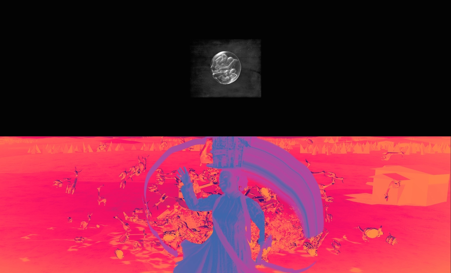 Arlette Quỳnh-Anh Trần, “Moon Dance and Her Besiege” (2024) – tạm dịch: Vũ điệu Trăng và sự bao vây của cô ấy”, ảnh ghép thấu kính kỹ thuật số trong khung do nghệ sĩ thiết kế, 36 x 120 cm, phiên bản 2/5. Nguồn ảnh: Eli Klein Gallery