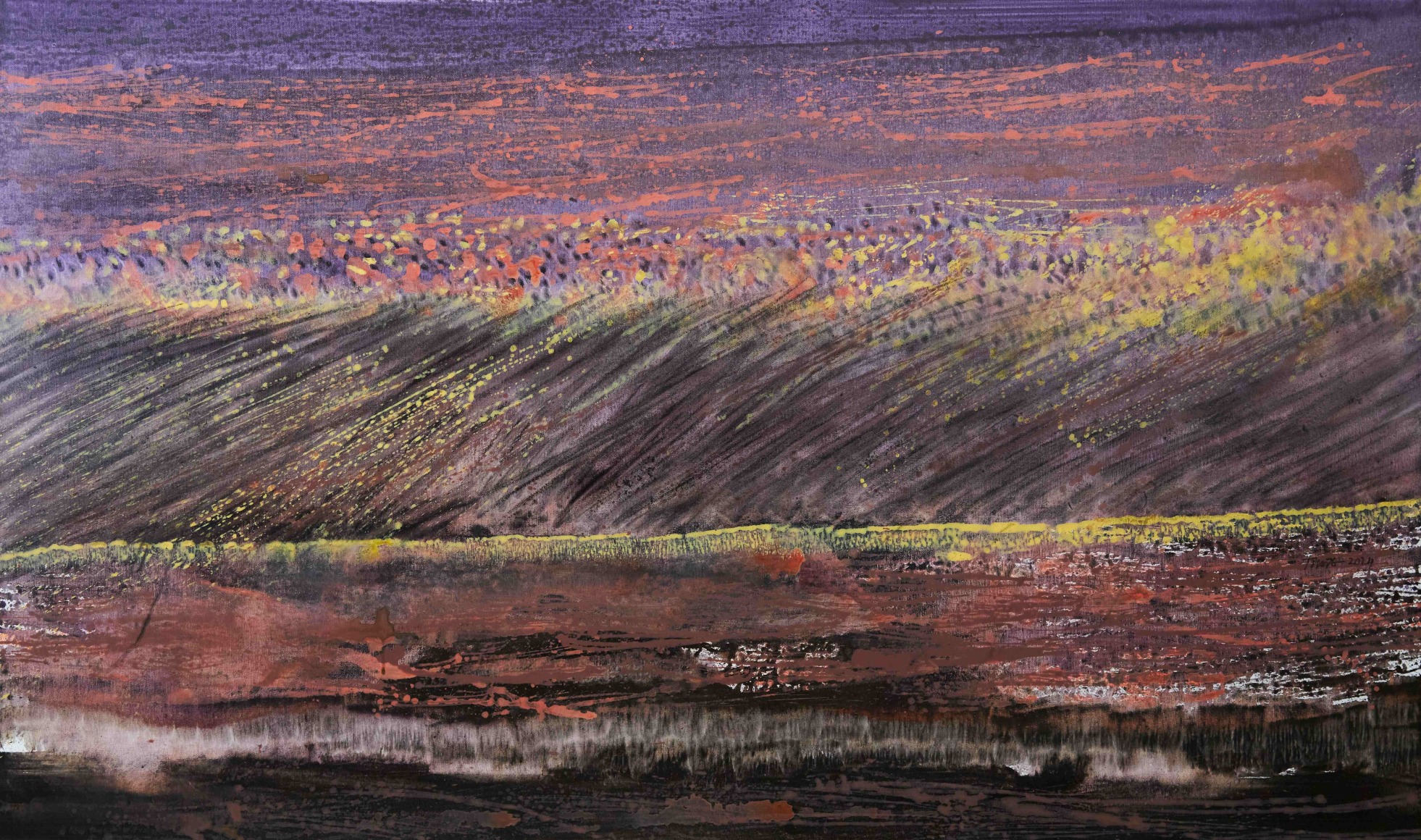 Ca Lê Thắng, “Beneath Deep Rivers, Field Submerged No. 3” (2024) – tạm dịch: “Bên dưới những dòng sông sâu, cánh đồng ngập nước số 3”, sơn dầu, acrylic và kỹ thuật hỗn hợp trên vải, 100 x 170 cm. Nguồn ảnh: Eli Klein Gallery