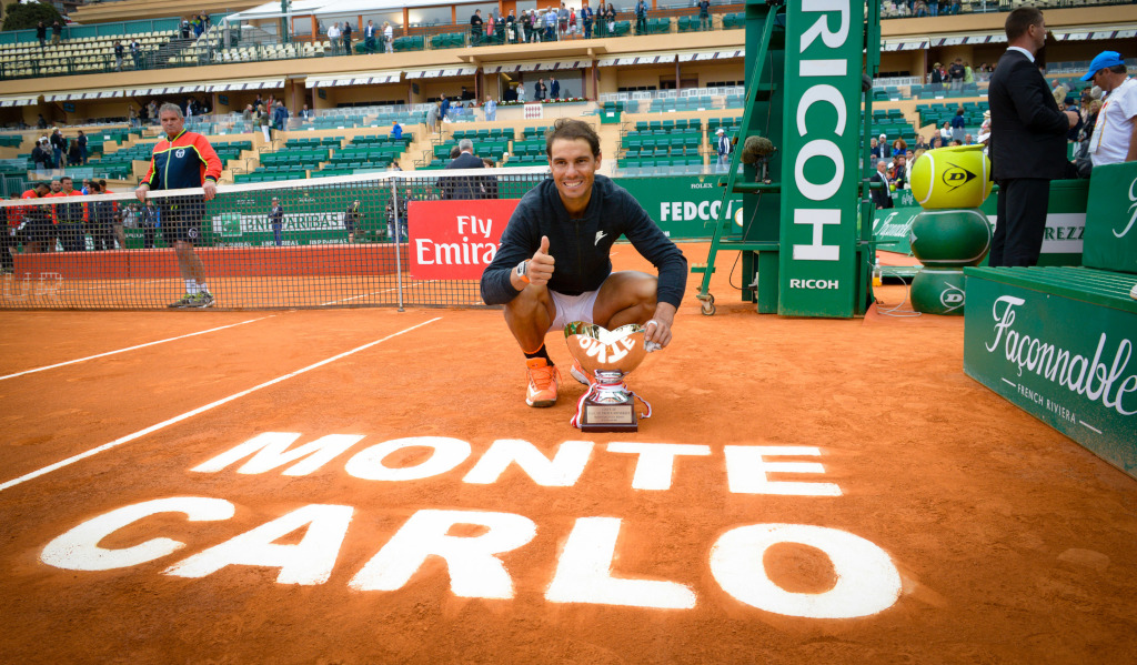(170424) — ROQUEBRUNE-CAP-MARTIN, April 24, 2017 (Xinhua) — Rafael Nadal of Spain poses for photos after the final match with his compatriot Albert Ramos-Vinolas at the ATP World Tour Masters Monte Carlo in Roquebrune-Cap-Martin, April 23, 2017. Rafael Nadal won 2-0 and claimed the title. (Xinhua/Jean-Marc Bernard) (Photo by Xinhua/Sipa USA)