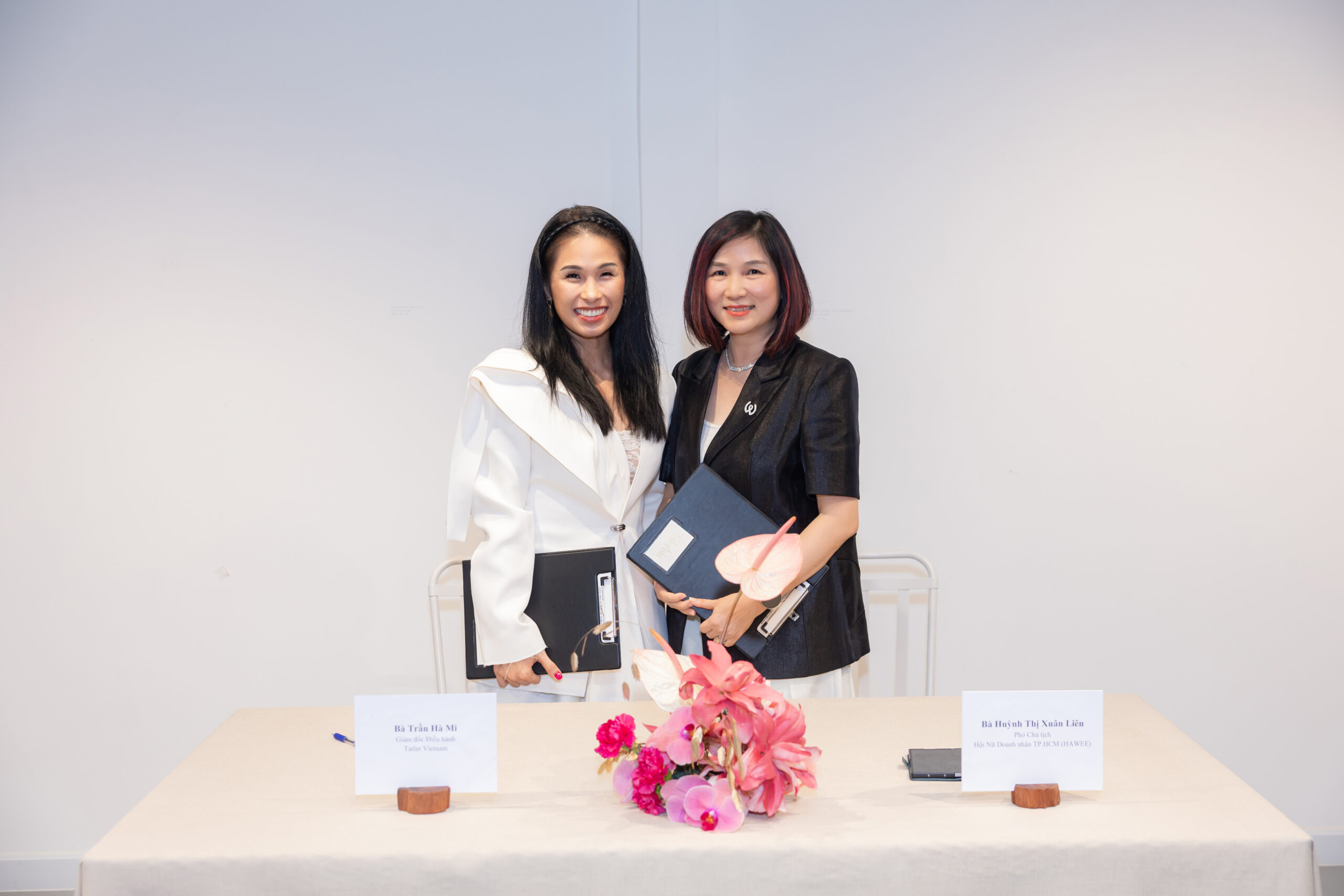 Mở đầu chương trình là lễ ký kết biên bản ghi nhớ (MOU) giữa Hội Nữ Doanh nhân TP.HCM (HAWEE) và Tatler Việt Nam – Nhã Tập Tinh Hoa, đánh dấu một bước tiến quan trọng trong việc gắn kết giữa hai tổ chức cùng chia sẻ tầm nhìn về việc nâng tầm tiếng nói nữ lãnh đạo. Đặc biệt hơn, thỏa thuận này được ký kết nhằm thiết lập mối quan hệ hợp tác chiến lược giữa Hội Nữ Doanh nhân TP.HCM (HAWEE) và Tatler Vietnam, trong khuôn khổ triển khai dự án Front & Female 2025.
