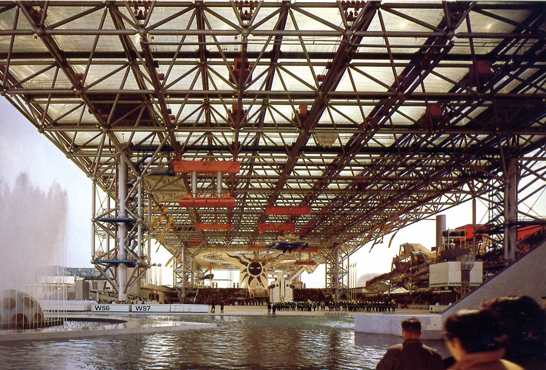 Gian triển lãm trung tâm tại Expo 1970 với cấu trúc giàn không gian bằng thép thiết kế bởi Kenzo Tange. Ảnh: Expo ’70