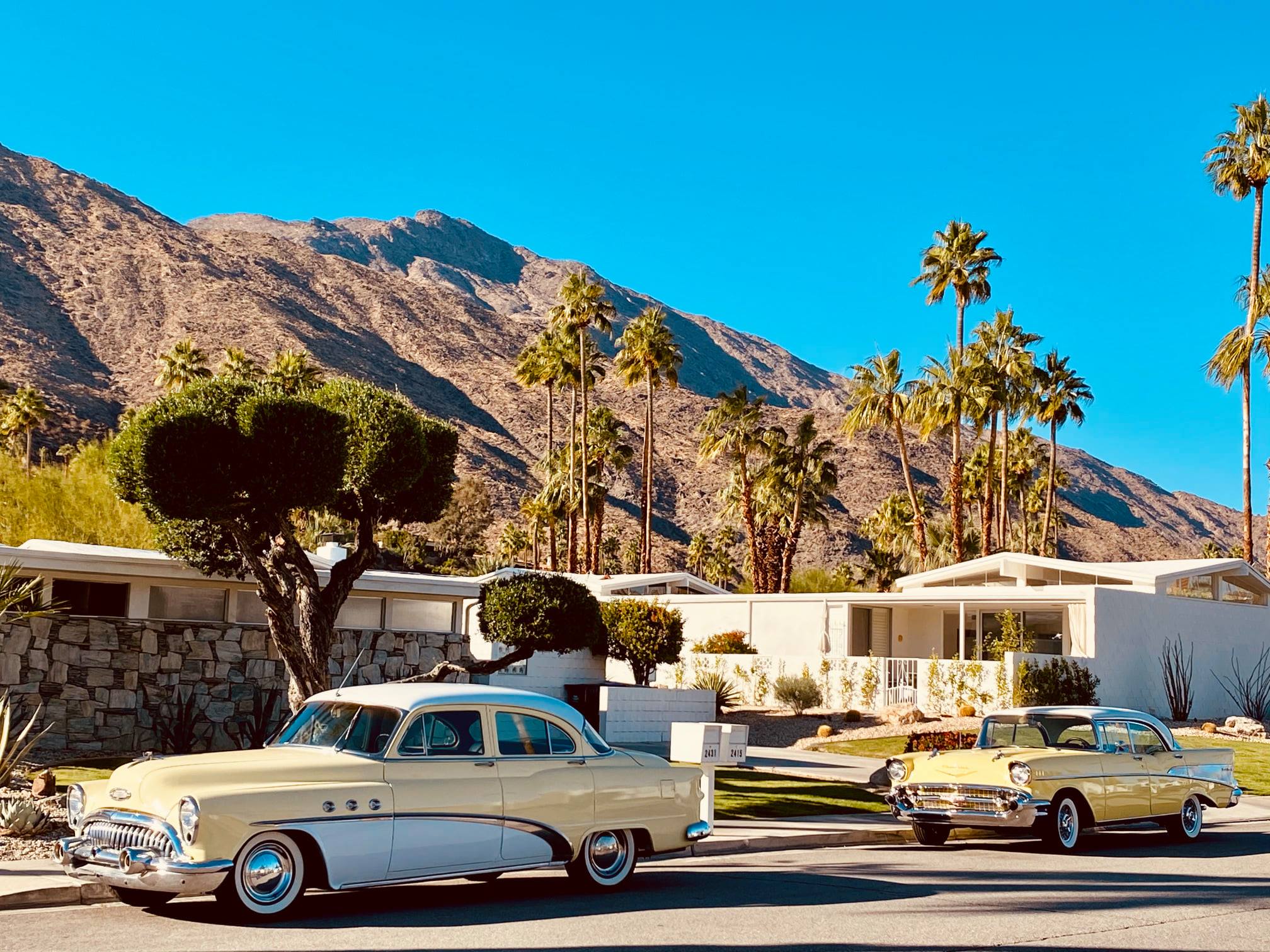 Những ngôi nhà theo phong cách kiến trúc Hiện đại giữa thế kỷ được xếp ngăn nắp theo hình vòng cung ở cuối con đường, một khu cul-de-sac hoàn mỹ