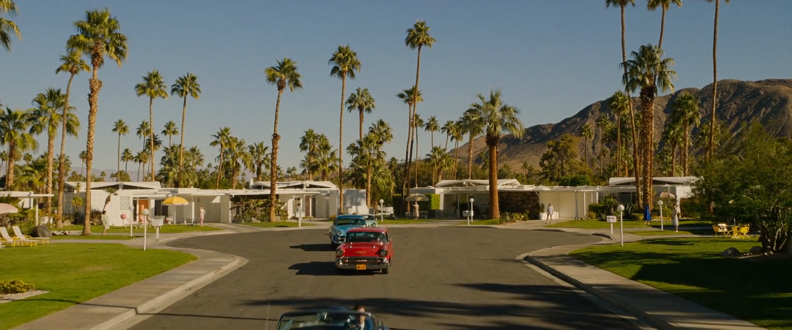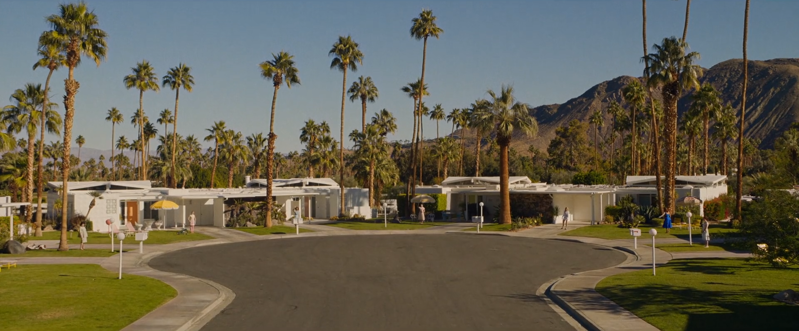 Mỗi công trình kiến trúc được lựa chọn đưa vào phim không chỉ để tạo ra một bối cảnh duy mỹ, mà còn để xây dựng một “bản đồ” về sự kiểm soát gia trưởng. Tính quy củ một cách cứng nhắc được thể hiện qua hình ảnh khu phố Canyon View Estates, nơi Alice và Jack sinh sống. Được thiết kế bởi công ty kiến trúc Palmer & Krisel, đây là hiện thân của giấc mơ ngoại ô thời hậu chiến, với những ngôi nhà sản xuất hàng loạt hiệu quả và tiện lợi. Tuy nhiên, trong phim, sự đồng dạng của chúng trở thành một ẩn dụ cho việc đàn áp cá tính và thực thi các vai trò giới cứng nhắc. Cảnh những chiếc xe rời đi đều đặn mỗi ngày nhấn mạnh sự lặp đi lặp lại một cách có kiểm soát của cuộc sống nơi đây.