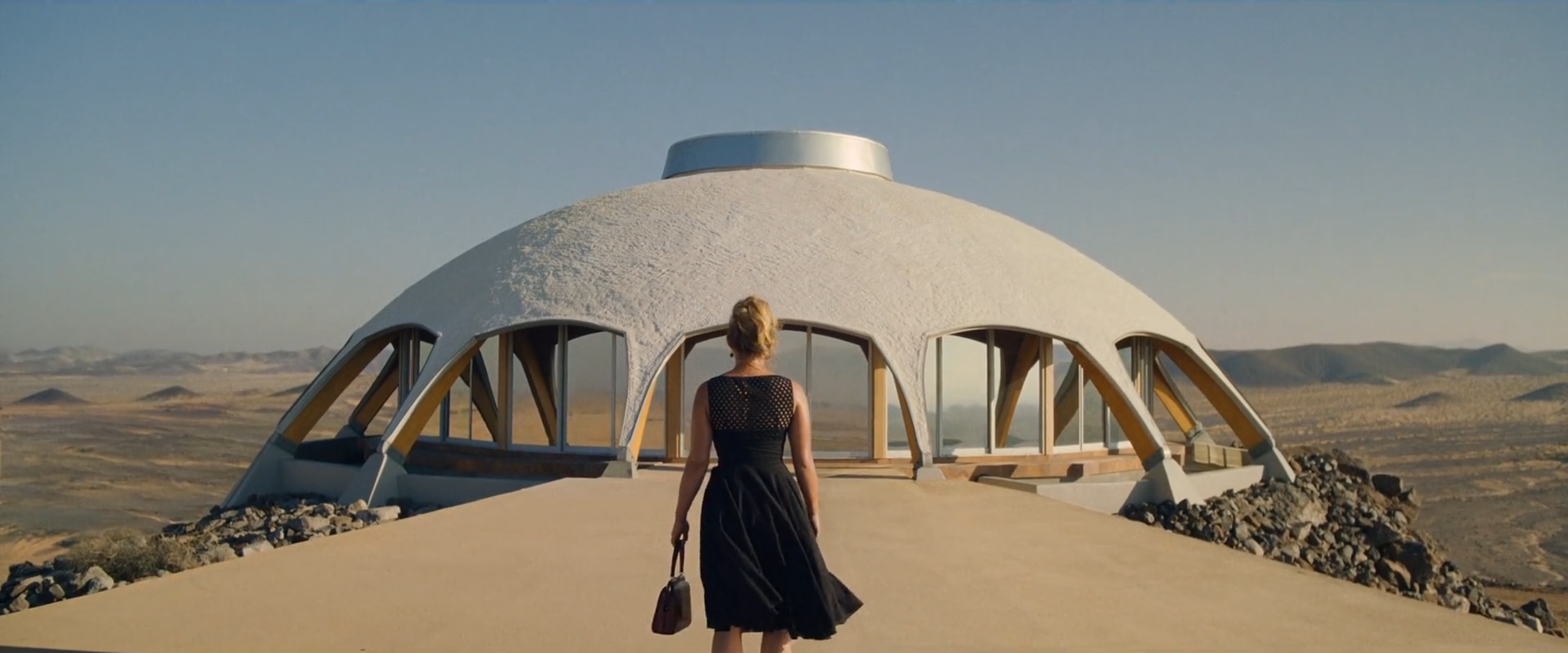 Đối lập với kiến trúc cởi mở của khu dân cư là trụ sở của Dự án Victory, nơi Alice phải chạy đến để trốn thoát. Đây là một công trình kiến trúc độc đáo khác, Volcano House, được thiết kế bởi Harold Bissner Jr. vào năm 1968. Ngôi nhà có hình mái vòm, giống như một chiếc đĩa bay, nằm trên đỉnh một ngọn núi lửa đã tắt giữa sa mạc Mojave. Vẻ ngoài “giống như tàu vũ trụ” của nó là chìa khóa cho vai trò biểu tượng trong phim. Nếu các ngôi nhà khác đại diện cho một phiên bản lý tưởng hóa của thực tại, thì Volcano House hoàn toàn khác biệt. Nó mang một vẻ ngoài xa lạ, phi nhân tính, báo hiệu rằng đây là ranh giới giữa thế giới nhân tạo và thế giới thực. Nó là cỗ máy trong khu vườn, là bộ não công nghệ lạnh lẽo điều khiển toàn bộ ảo mộng ấm áp bên dưới.