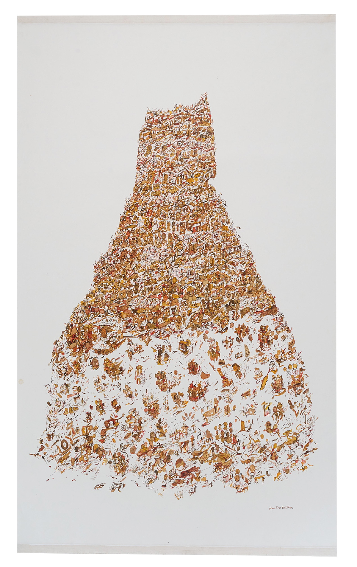 Giống như câu chuyện Tháp Babel, nơi con người cố vươn tới vĩnh cửu nhưng thất bại, tạo ra hỗn loạn và phân tán, các hình thể trong tranh của Phạm Trần Việt Nam cũng không tìm được điểm dừng. Chúng là những mảnh vỡ của tham vọng thất bại, những linh hồn không còn ngôn ngữ chung, chỉ còn lơ lửng trong một vòng xoáy bất tận. Cái đẹp trong tranh không nằm ở kỹ thuật hay bố cục, mà ở sự rung động của bản thể, nơi cảm xúc không cần lý giải, chỉ cần được cảm nhận sâu sắc.