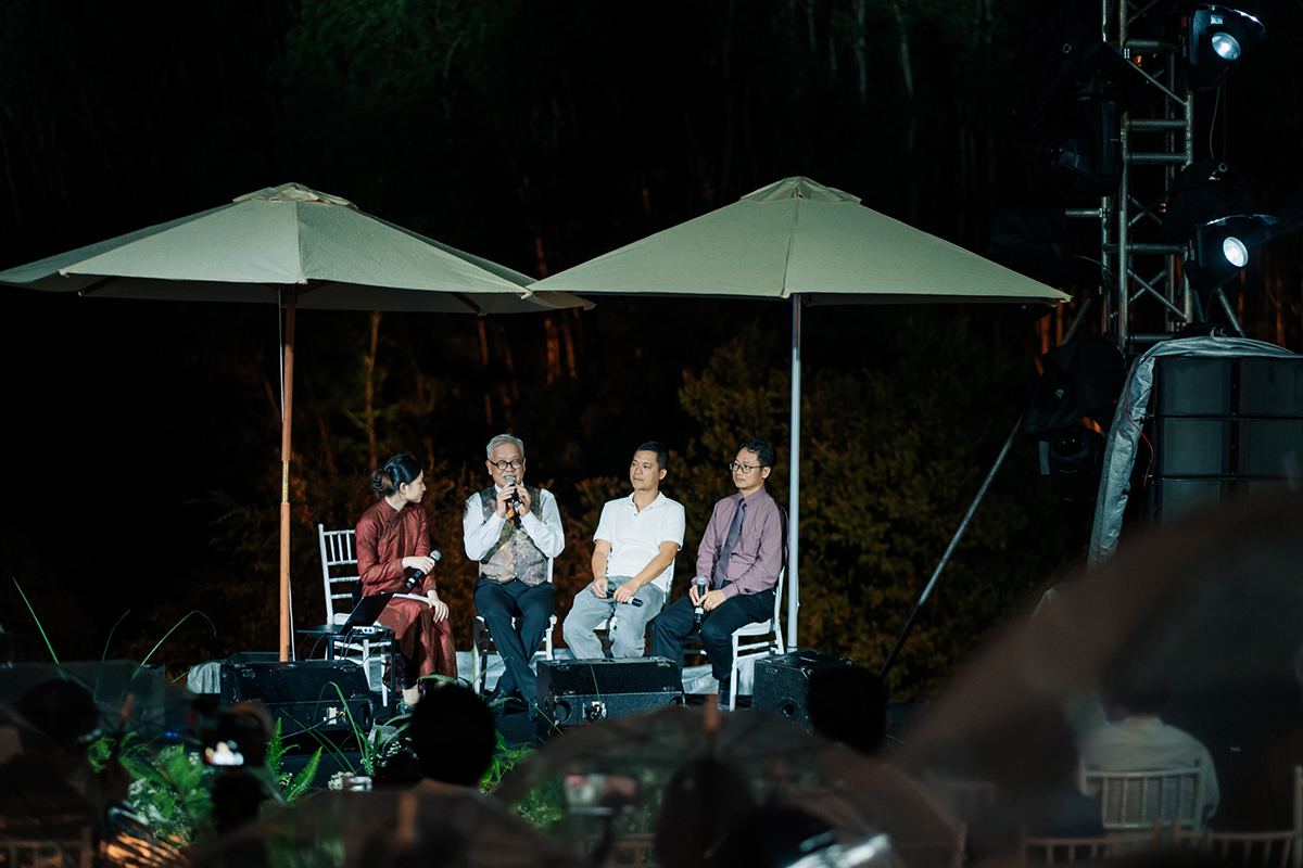 Chương trình khai mạc đi kèm với một phần trình diễn đặc biệt bởi Nguyên Lê, nhạc sĩ và nghệ sĩ guitar nổi tiếng trong làng nhạc Jazz Pháp. Trong đêm mưa, chúng tôi nghe Nguyên Lê cất lên tiếng đàn anh sáng tác sau khi xem loạt tranh của Phạm Trần Việt Nam. Chính ở đây, ta thấy được sự đối thoại giữa các loại hình nghệ thuật khác nhau, làm nảy sinh những tầng nghĩa, giá trị mới.