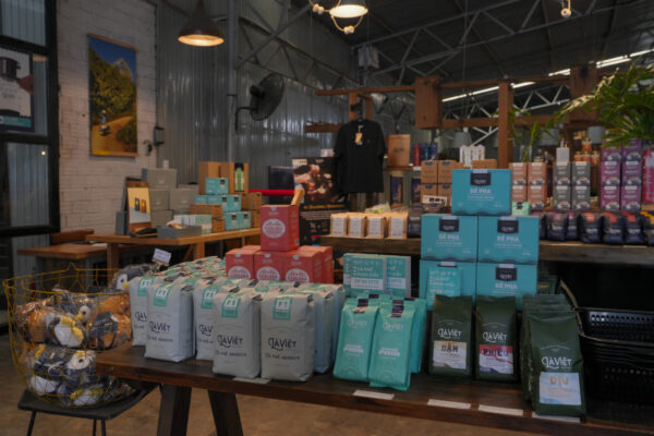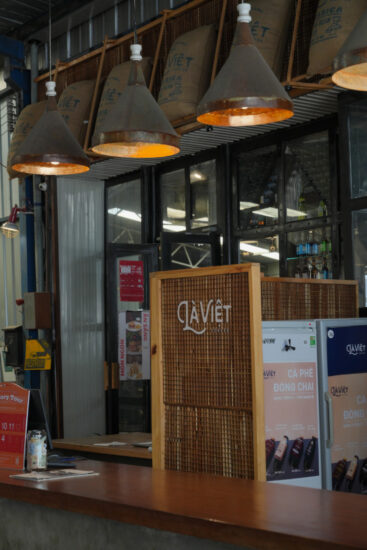 Không gian quán cafe cũng là nơi trưng bày và sơ chế và đóng gói các loại cà phê do Là Việt sản xuất