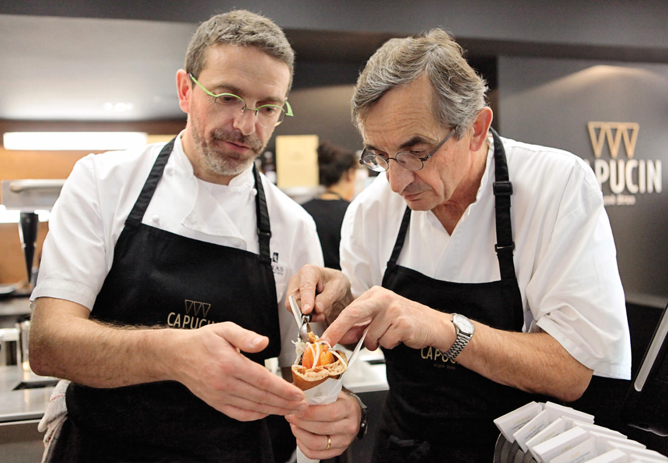 Đầu bếp nổi tiếng Sébastien Bras (người bên tay phải)
