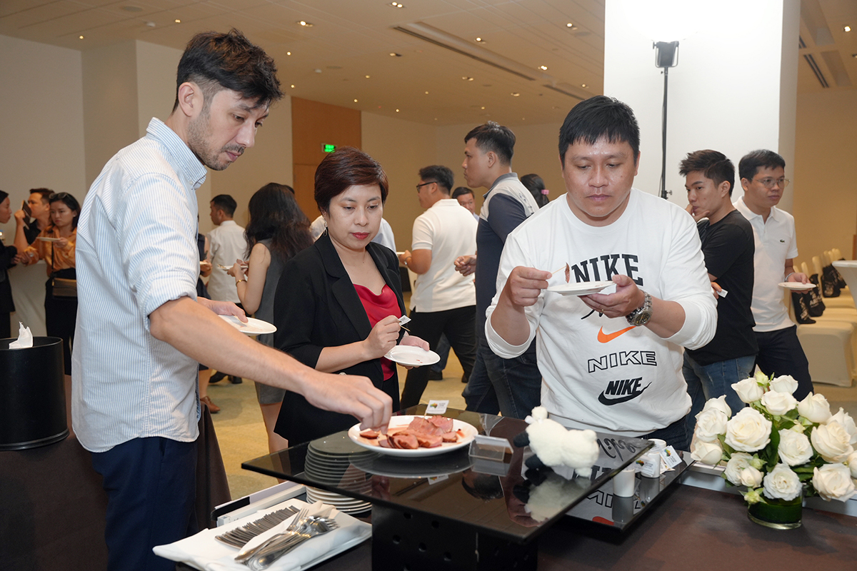 Buổi tối của sự kiện là một hành trình ẩm thực đa văn hóa thực sự, nơi các khách mời được thưởng thức những món ăn đặc sắc được chế biến bởi chính các Lambassador, tạo nên những cuộc trò chuyện đầy cảm hứng và cơ hội giao lưu giá trị. Lambassador Francis Thuận, nhà sáng lập và bếp trưởng nhà hàng Nephele rất hào hứng chia sẻ: “Cừu là nguồn nguyên liệu rất tốt cho sức khỏe, nhưng ở Việt Nam chưa có thói quen tiêu dùng. Tôi có cơ hội trở thành Đại sứ thịt cừu từ 2022 và đi thăm quan thực tế từ trang trại đến bàn ăn tại Úc, trong thực đơn nhà hàng của tôi thường xuyên có món cừu. Và tôi luôn muốn giới thiệu với nhiều người hơn về cách chế biến thịt cừu gần gũi và quen thuộc với người Việt Nam.”