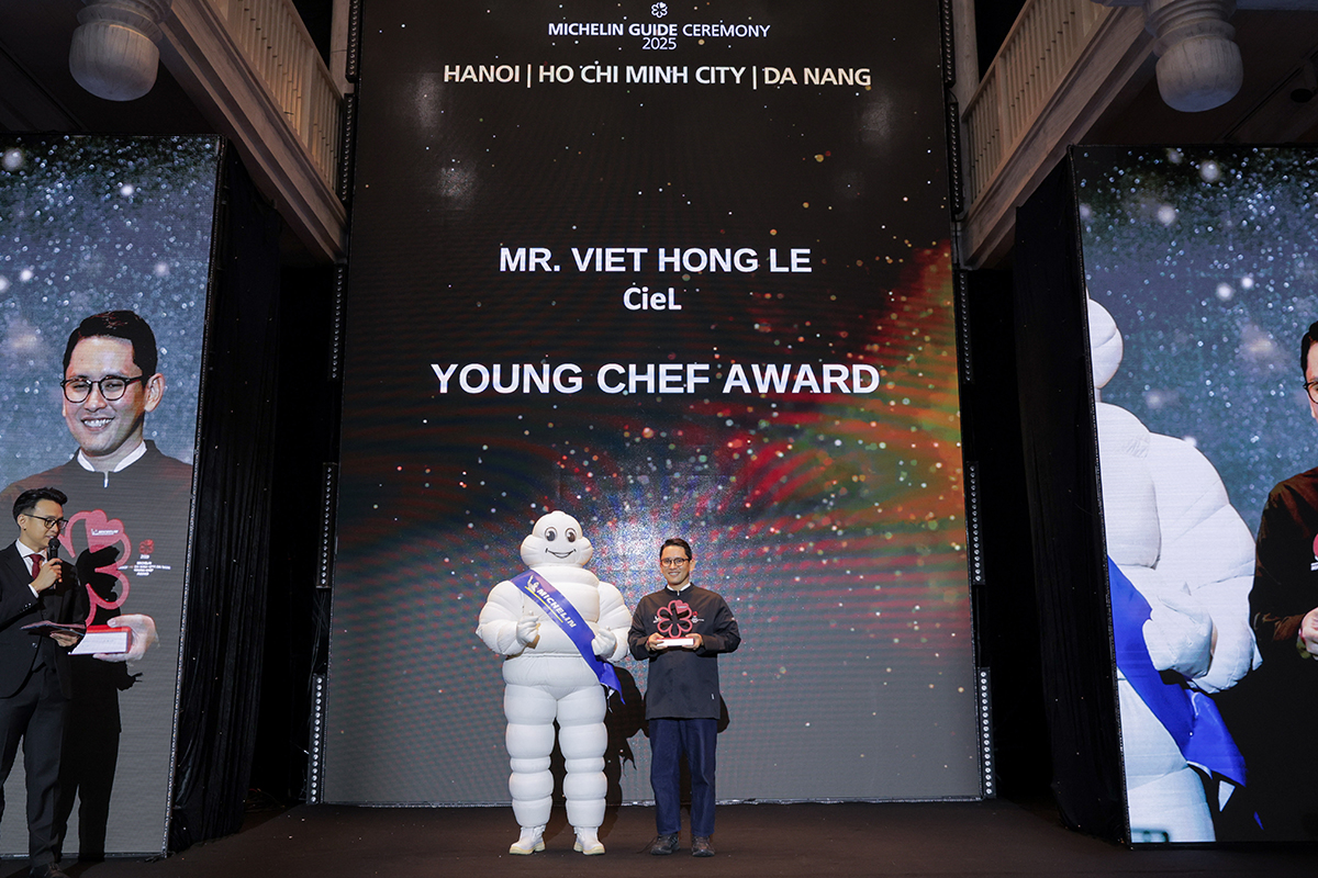 Giải thưởng Đầu bếp trẻ xuất sắc của MICHELIN Guide vinh danh một đầu bếp trẻ có tài năng xuất sắc và tiềm năng lớn, gây ấn tượng mạnh với đội ngũ thẩm định viên. Năm nay, Giải thưởng Đầu bếp trẻ xuất sắc được trao cho đầu bếp Lê Việt Hồng đến từ nhà hàng mới nhất đạt một Sao MICHELIN CieL tại Thành phố Hồ Chí Minh. Sinh năm 1992, Việt là một gương mặt trẻ đầy triển vọng với 14 năm kinh nghiệm trong ngành ẩm thực. Anh bắt đầu sự nghiệp tại một thương hiệu khách sạn quốc tế, rèn luyện tay nghề trong suốt 6 năm sau đó dưới sự hướng dẫn của chị gái – cũng là một bếp trưởng bếp tiệc. Năm 2019, anh đồng sáng lập The Monkey Gallery và trong thời gian đại dịch xảy ra, anh đã theo đuổi việc học chính quy tại trường ẩm thực Ferrandi (Pháp). Hành trình đó đã dẫn đến sự ra đời của nhà hàng CieL.
