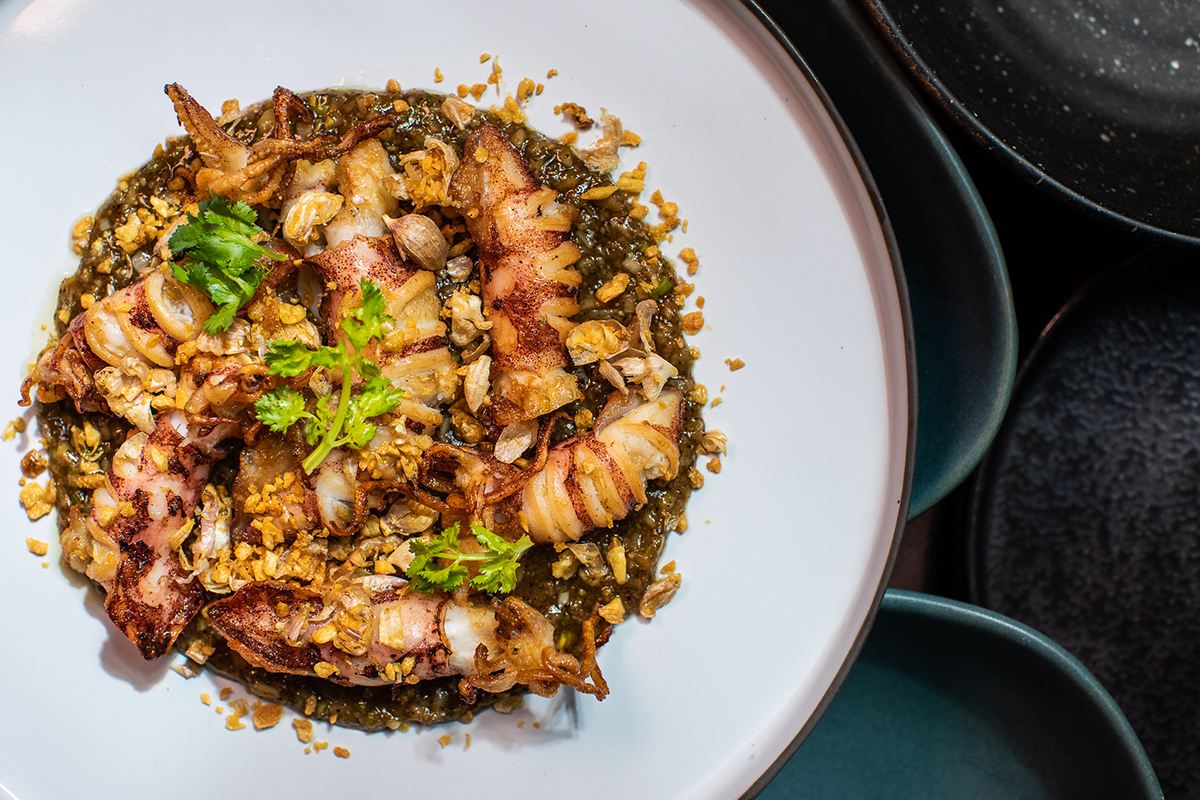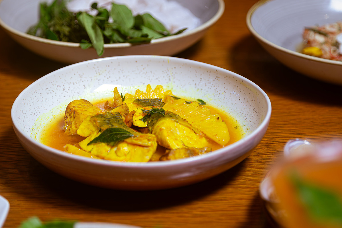 Cà ri Gaeng Bai Ra: món cà ri tôm hùm béo ngậy, kết hợp cùng lá thì là Ai Cập – một loại thảo mộc hiếm gặp, tạo nên sự hòa quyện độc đáo giữa vị cay, béo và thanh mát. Đây là biểu tượng cho sự sáng tạo và đam mê khám phá của Chef Bee, thể hiện sự cầu kỳ trong chọn nguyên liệu và kỹ thuật chế biến.