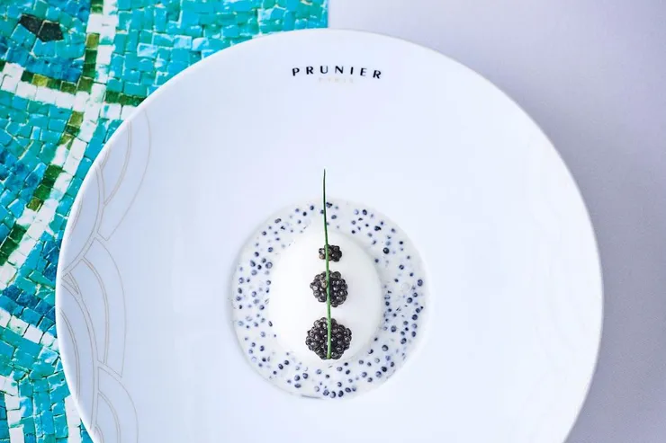 Một điểm nhấn đáng nhớ là L’Œuf Christian Dior: trứng lòng đào hoàn hảo, phủ caviar Prunier, rưới kem điểm trứng cá hồi, ôm lấy lớp thạch giăm bông Paris — món ăn được cho là lấy cảm hứng từ chính buổi tiệc tối mà Dior tổ chức cùng Yves Saint Laurent và Pierre Bergé. Đây không chỉ là món ăn, nó là một hồi ức được tái hiện bằng vị giác.