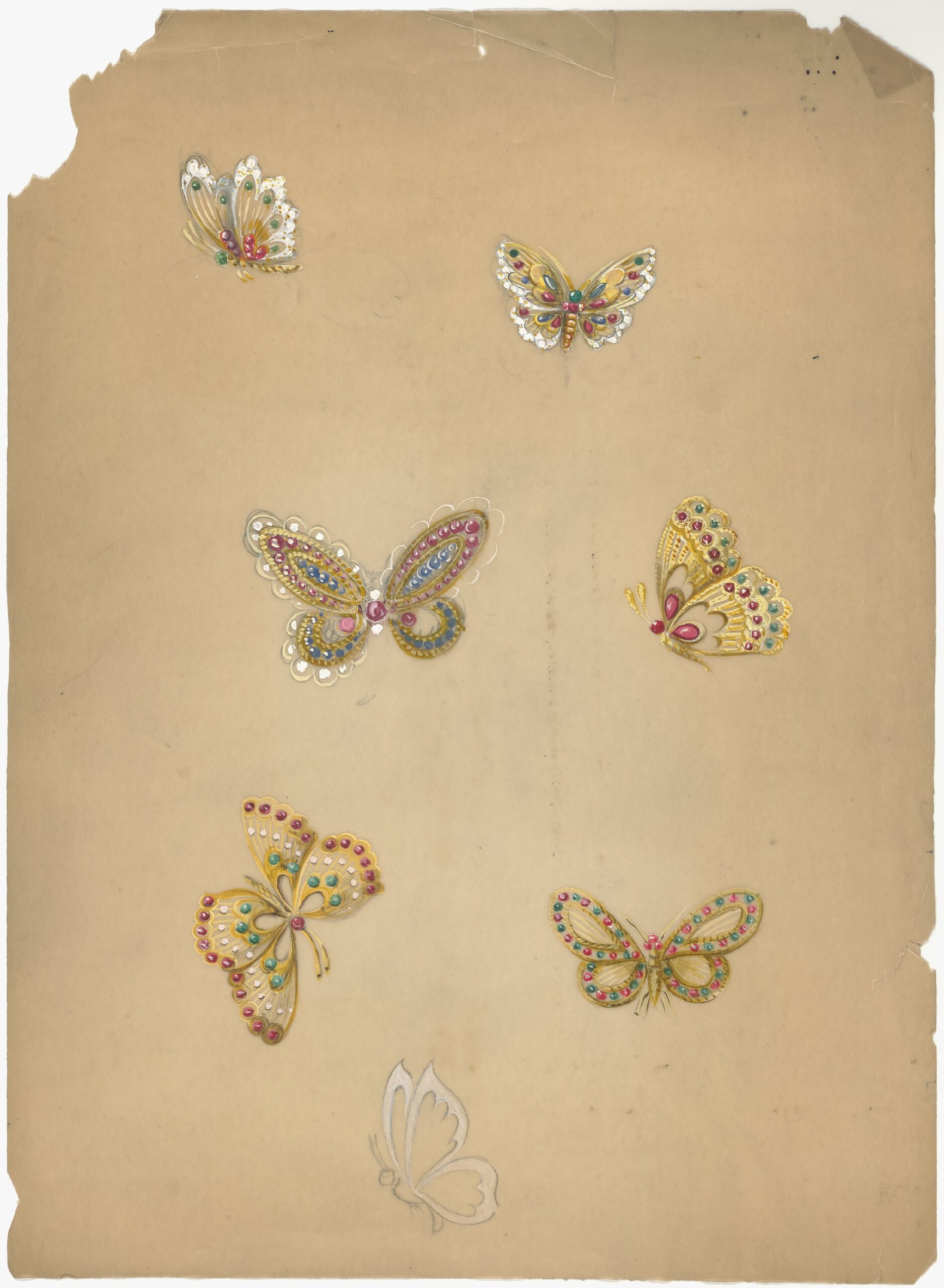Bản vẽ các mẫu trâm cài Butterfly, khoảng năm 1945. Từ kho lưu trữ Van Cleef & Arpels.