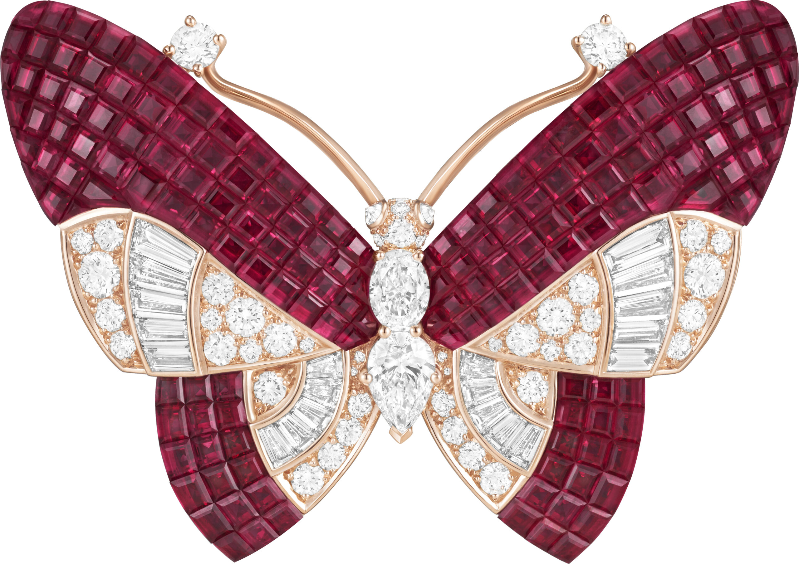 Trâm cài Onde Mystérieuse; bằng vàng hồng, kim cương và hồng ngọc nạm theo kỹ thuật Mystery Set truyền thống.