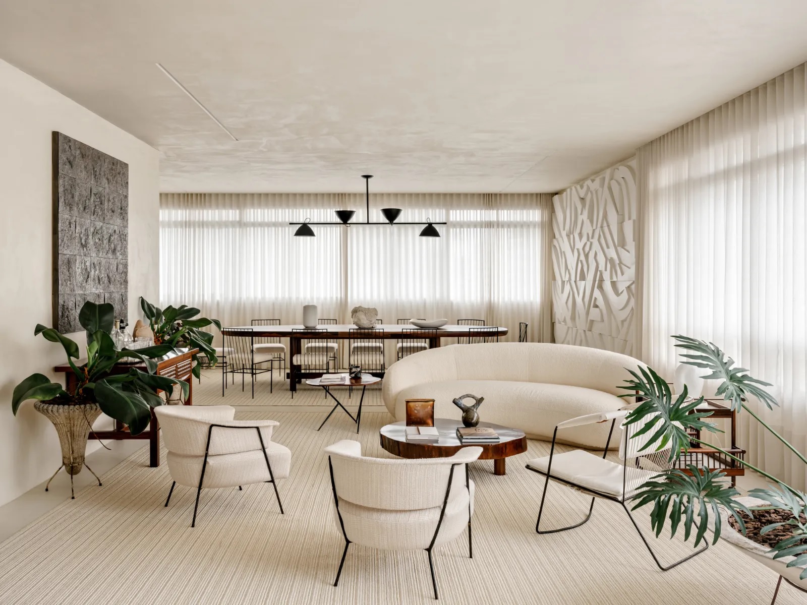 Không gian nội thất lấy cảm hứng từ gam màu Cloud Dancer của Pantone. Ảnh: AD Middle East.