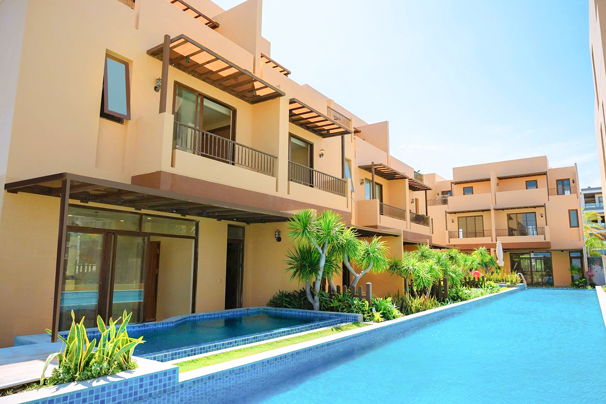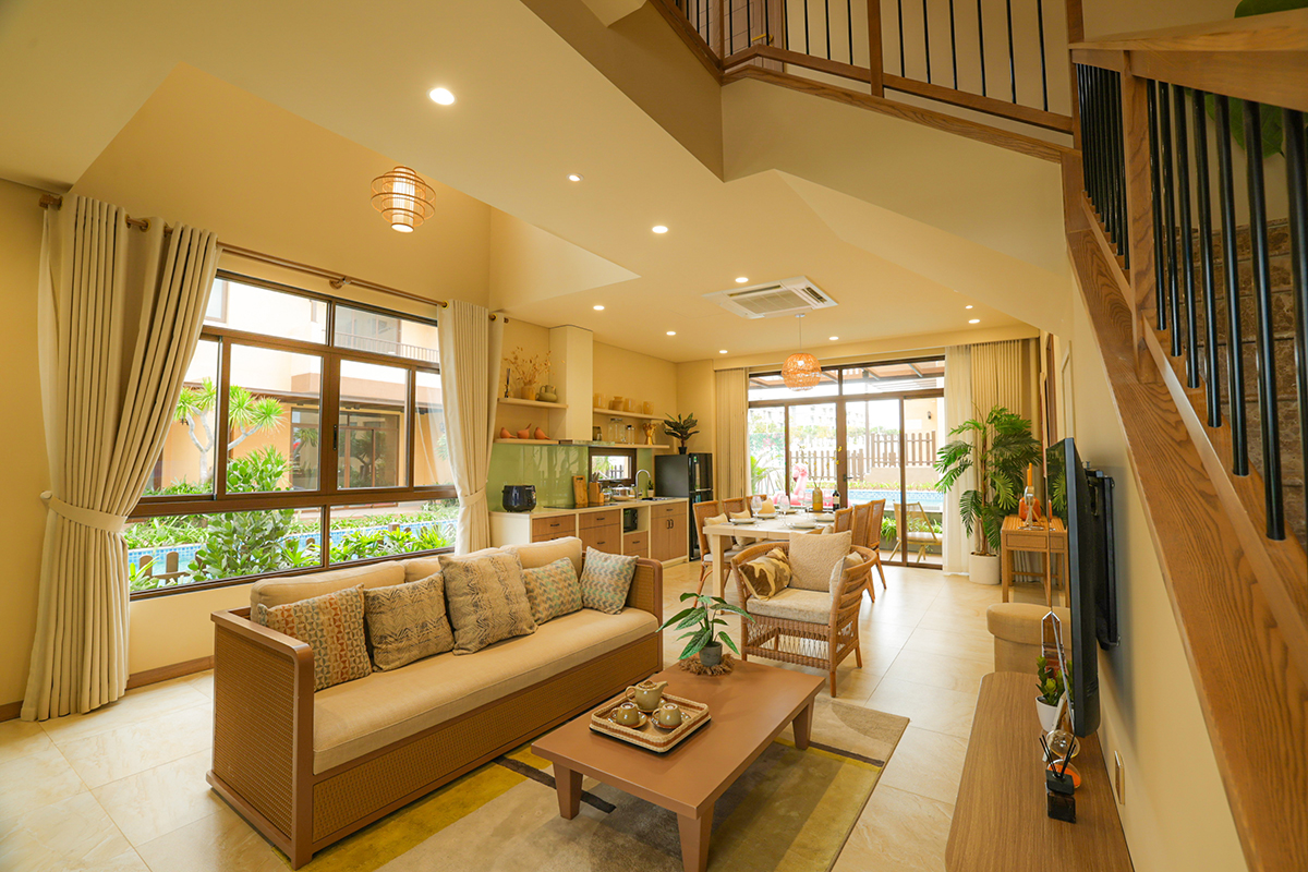 Sự kết hợp giữa gam màu sa mạc ấm áp, chất liệu nguyên bản và yếu tố mặt nước mang lại chiều sâu cho không gian, đồng thời phù hợp với nhịp sống linh hoạt và xu hướng tận hưởng tại các đô thị ven biển.