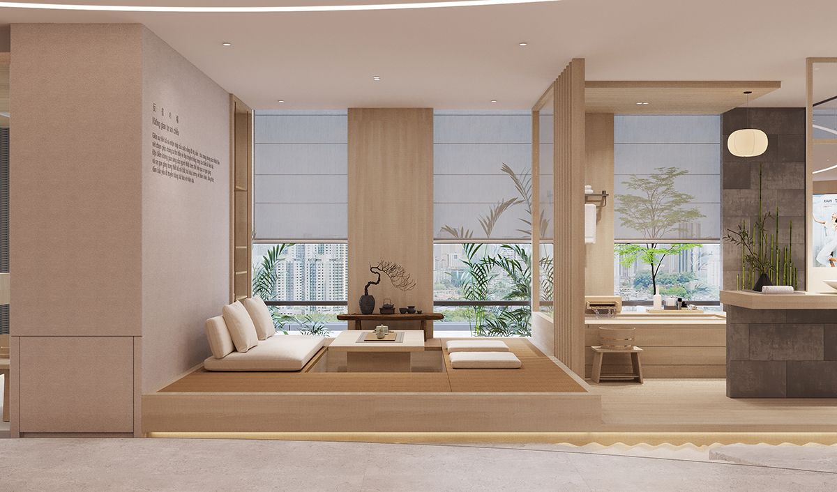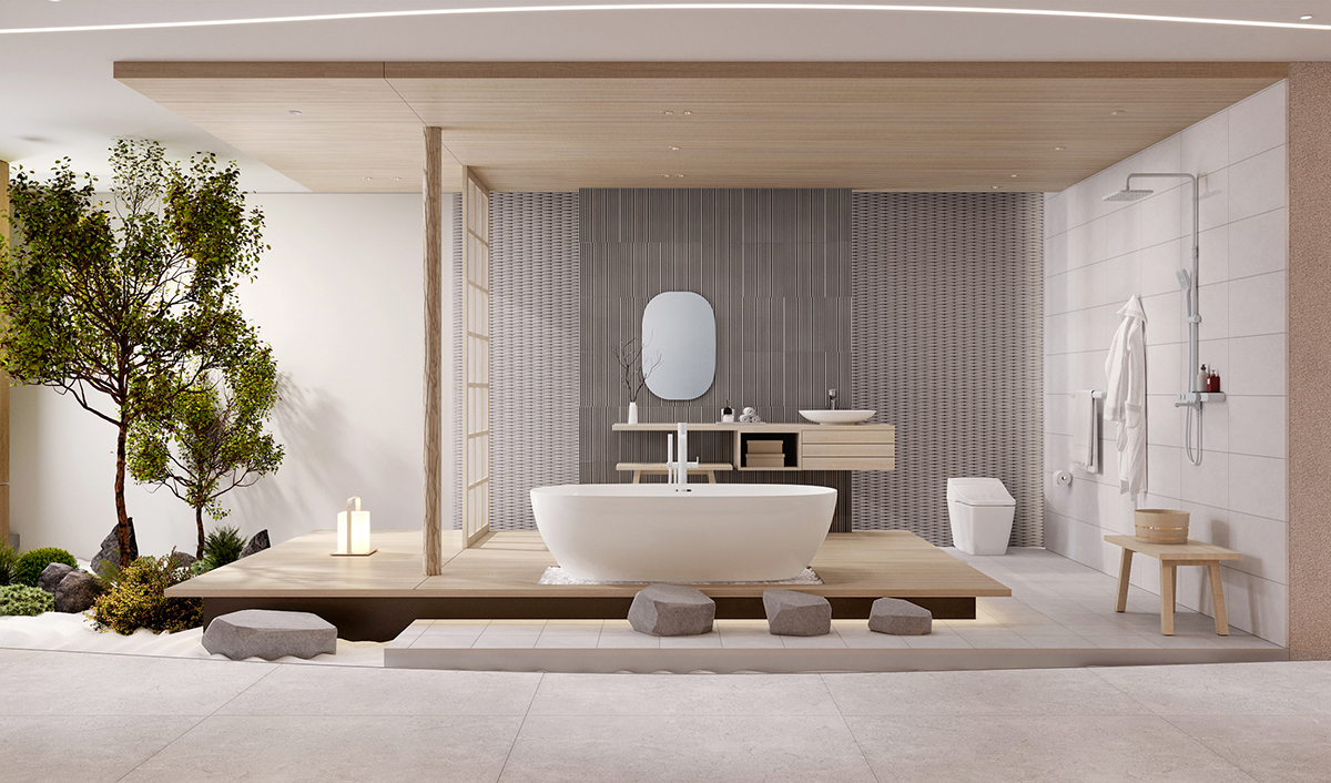Tại không gian trưng bày của thương hiệu INAX, LIXIL tái hiện không gian trà đạo – nét văn hóa đặc trưng của đất nước mặt trời mọc – khơi gợi sự tĩnh lặng an hòa và đưa tâm trí trở về với vẻ đẹp tinh tế của những giá trị truyền thống.