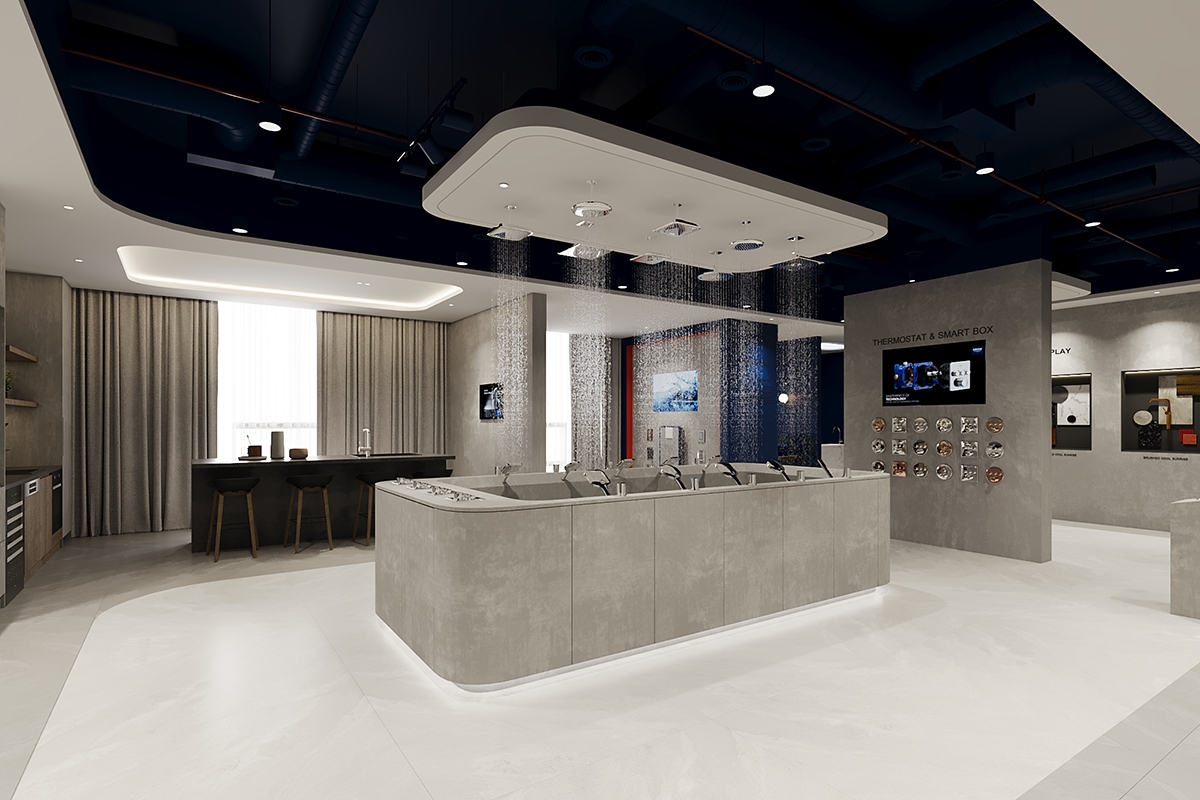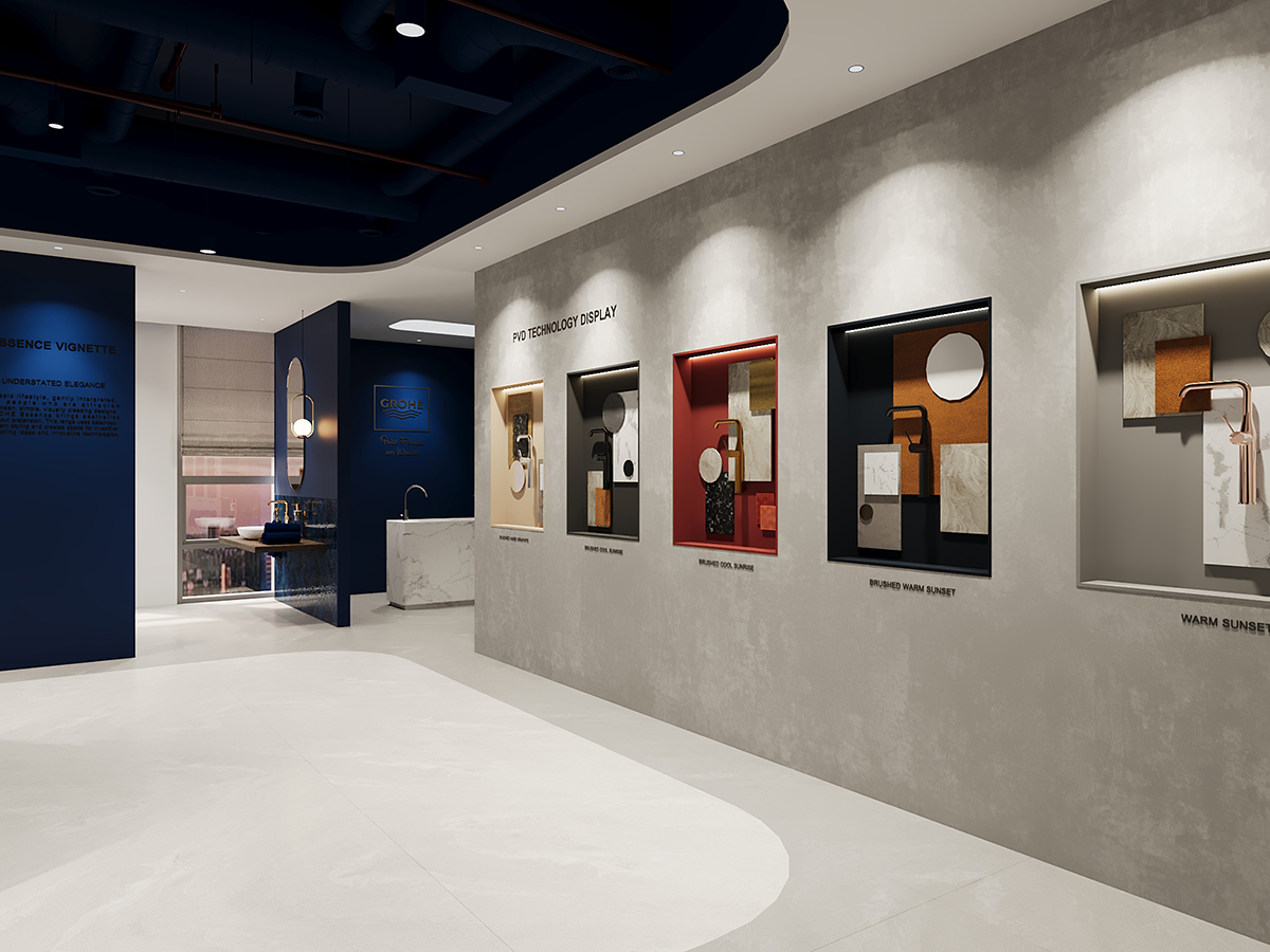 Không gian còn lại thuộc về GROHE – thương hiệu thiết bị vệ sinh cao cấp đến từ Đức, mời gọi khách hàng bước vào không gian trải nghiệm sang trọng mang hơi hướng châu Âu. Một trong những khám phá độc đáo mà khách hàng sẽ thích thú là không gian GROHE SPA, nơi mang đến trải nghiệm cá nhân hóa tuyệt đối với bộ sưu tập Private Collection và công nghệ ICON 3D, cho phép tùy chỉnh màu sắc và thiết kế theo phong cách riêng.
