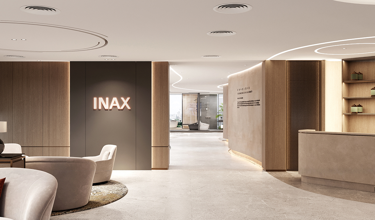 Hành trình trải nghiệm LEC bắt đầu từ không gian sảnh rộng lớn và rực rỡ, nơi tinh hoa thiết kế phòng tắm được chắt lọc và tôn vinh qua từng chi tiết. Từ đây, khách hàng tiếp tục khám phá khu trưng bày sản phẩm INAX – một trong hai phân khu chính mang đậm tinh hoa di sản Nhật Bản.