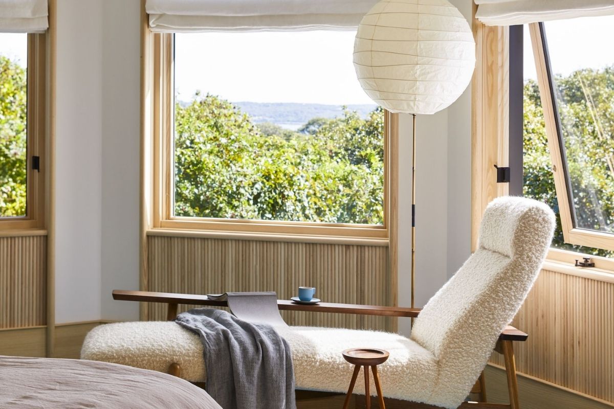 Một phòng ngủ lý tưởng là nơi mà mỗi chi tiết được chọn lựa đều tạo nên cảm giác hài hòa. Giường với phần đầu giường bọc linen, nỉ hoặc gỗ tự nhiên giúp mang lại cảm giác mềm mại mà vẫn thoáng khí, phù hợp với khí hậu nhiệt đới. Các món nội thất đi kèm như tủ, tab đầu giường hay ghế thư giãn nên ưu tiên chất liệu gỗ sáng màu, mây tre đan hoặc veneer mịn với thiết kế tinh giản, tránh mọi sự cầu kỳ không cần thiết. Một chiếc ghế nhỏ đặt bên cửa sổ, kèm theo đèn đọc sách ánh vàng dịu sẽ là nơi lý tưởng cho những buổi chiều thảnh thơi.