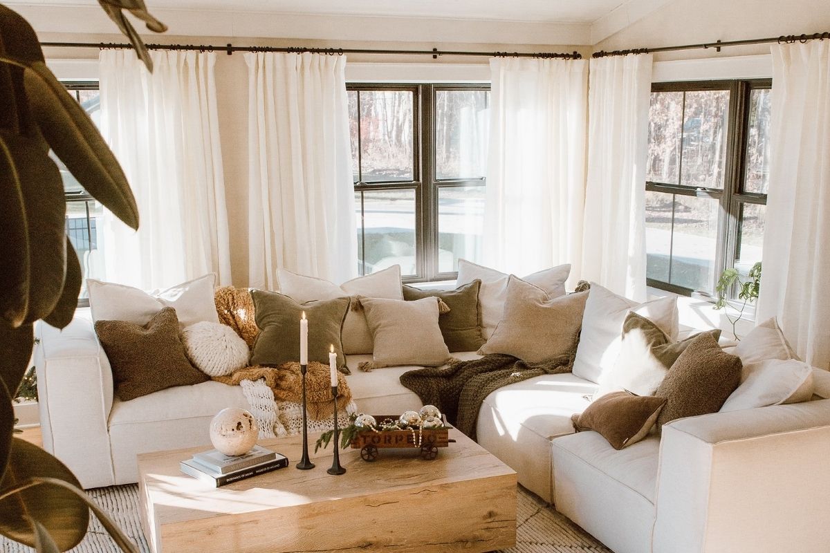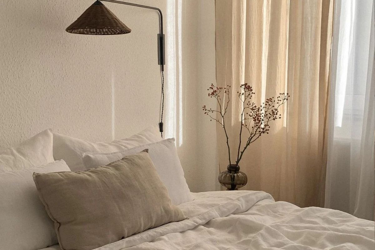 Bên cạnh đó, linen – loại vải “sinh ra để dành cho mùa nóng” chính là lựa chọn lý tưởng cho những ai yêu cảm giác mát tay và nhẹ da. Vải linen có khả năng thấm hút mồ hôi, thoáng khí, đồng thời tạo ra cảm giác “mềm mà không nóng” rất riêng. Với sắc màu tự nhiên như trắng ngà, be, xám nhạt, linen dễ dàng kết hợp cùng gỗ mộc, đá thô hay mây tre, tạo nên bảng phối vật liệu gần gũi nhưng không kém phần trang nhã. Từ bộ ga gối, rèm cửa, vỏ gối sofa đến khăn trải bàn, linen luôn mang đến vẻ đẹp giản dị, chậm rãi và chân thành. Thậm chí, những nếp nhăn đặc trưng của vải không phải là khuyết điểm cần che giấu, mà là một phần của thẩm mỹ sống chậm, nơi cái đẹp nằm ở sự thô mộc và tự nhiên.