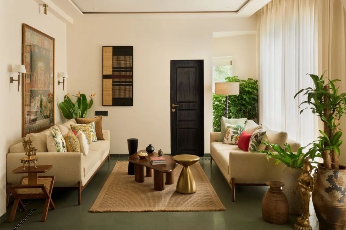 Bảng màu đóng vai trò như một lớp nền tinh thần. Những tông sáng và dịu như trắng, be, xanh bạc hà hay nâu nhạt không chỉ dễ phối với chất liệu tự nhiên, mà còn có tác dụng làm dịu thị giác, tạo cảm giác mát mẻ ngay cả trước khi bạn bật quạt. Nội thất có chiều cao thấp, chân thanh mảnh giúp căn phòng trông cao và thoáng hơn, làm nhẹ đi cảm giác “nặng nề” về mặt không gian. Nếu có điều kiện, bạn có thể cân nhắc những yếu tố kiến trúc phụ trợ như giếng trời, lam chắn nắng hoặc hồ nước nhỏ, đều là những chi tiết tạo hiệu ứng làm mát, vừa mang lại cảm giác sống chậm và an trú giữa lòng đô thị.