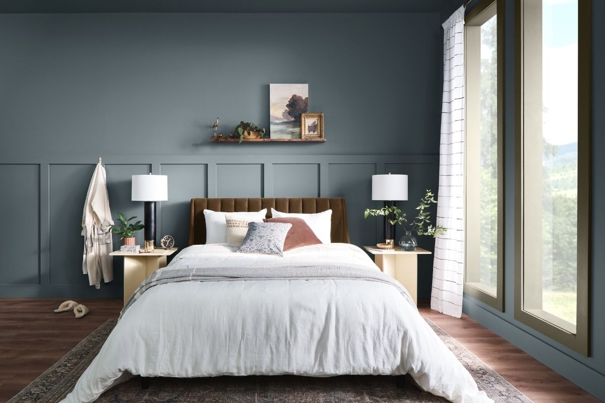Phòng ngủ là nơi chốn của sự nghỉ ngơi và tái tạo năng lượng. Những gam lạnh và nhẹ như xanh pastel, tím oải hương, hoặc xám pha xanh dương là lựa chọn lý tưởng để tạo cảm giác thư thái, giảm căng thẳng. Ngược lại, nên hạn chế những màu sắc kích thích như đỏ, cam đậm hoặc vàng rực vốn có thể ảnh hưởng đến chất lượng giấc ngủ hoặc làm gia tăng cảm giác bức bối trong không gian khép kín.