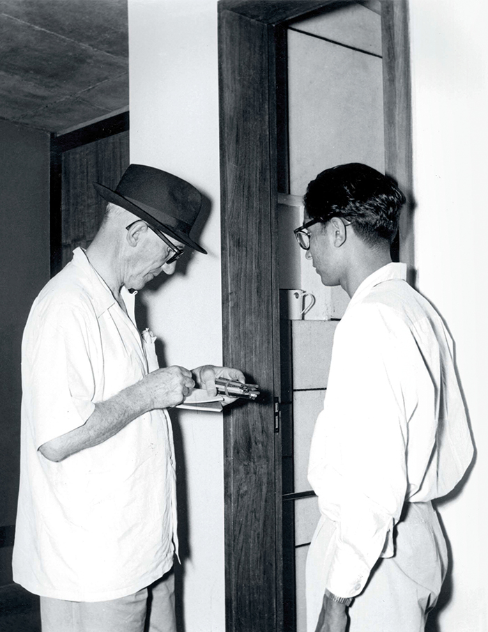Balkrishna Doshi đang làm việc với Le Corbusier tại công trình Shodhan House. Ảnh chụp bởi: Studio Sangath