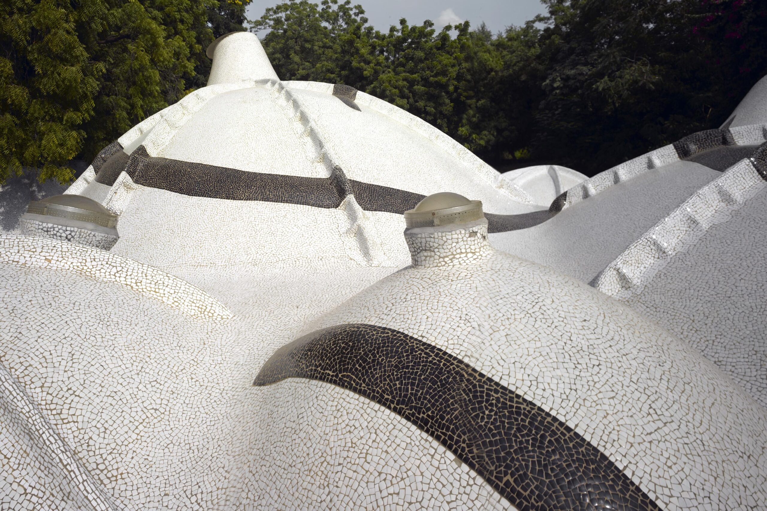 Những mảnh sành lấp lánh trên mái Husain-Doshi Gufa giữa cái nắng Ahmedabad. Ảnh: Edmund Sumner