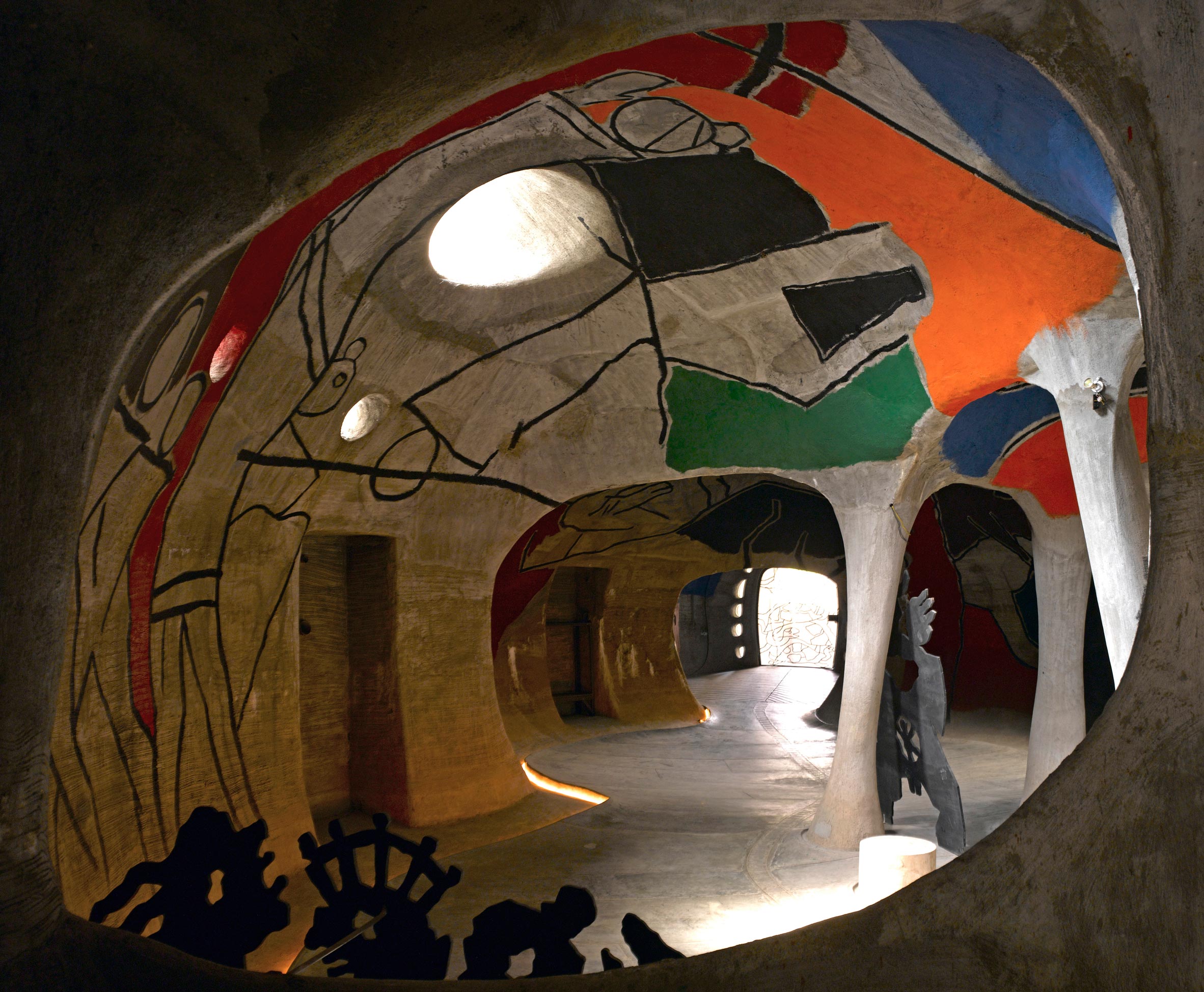 Tranh của Husain bên trong những mái vòm của Doshi tại Husain-Doshi Gufa. Ảnh: Edmund Sumner