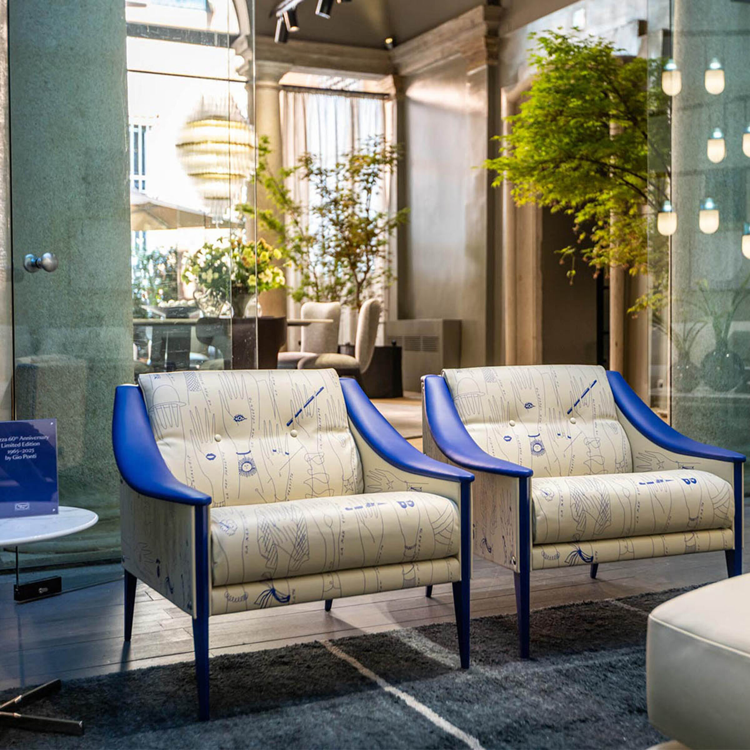 Ghế bành Dezza phiên bản kỷ niệm 60 năm được trưng bày tại showroom Poltrona Frau Milan