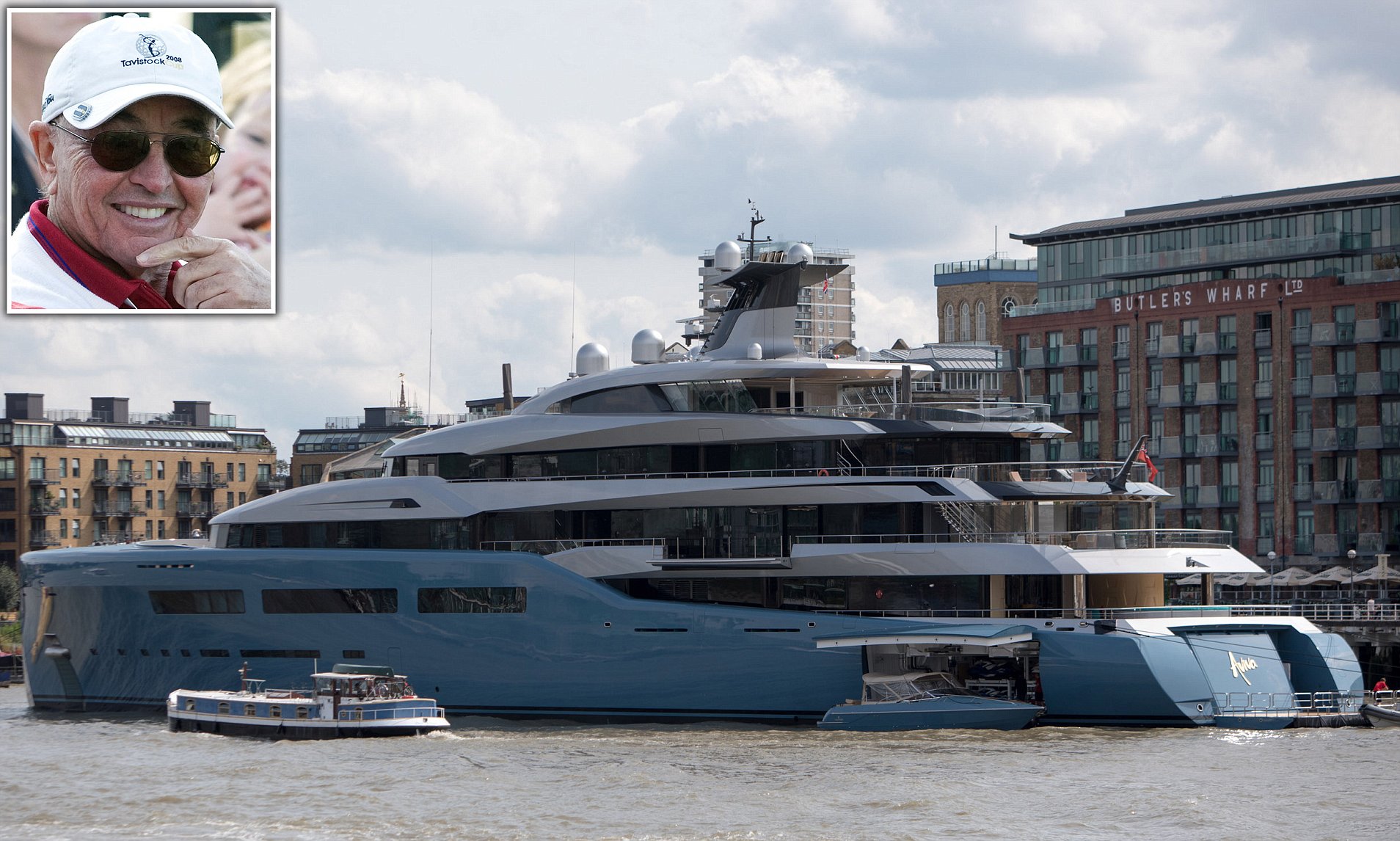 Tottenham Hotspur Owner Joe Lewis’ superyacht Aviva is spotted towering over other ships on the Thames. Aviva is currently moored at Butlers Wharf near Tower Bridge and the Shard