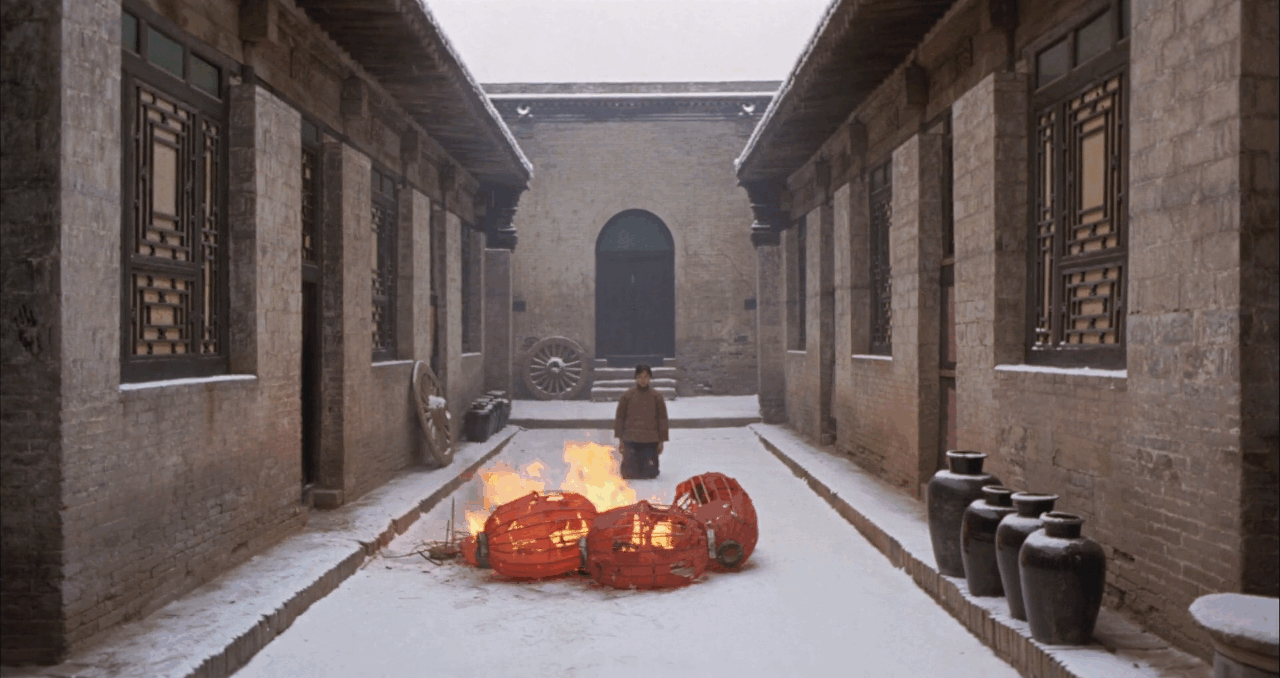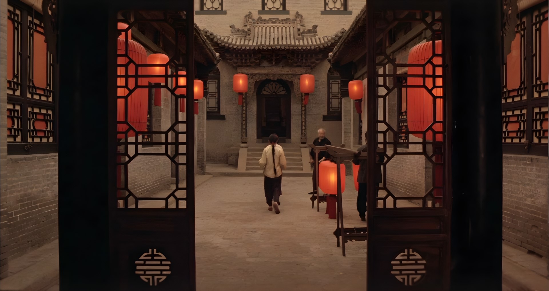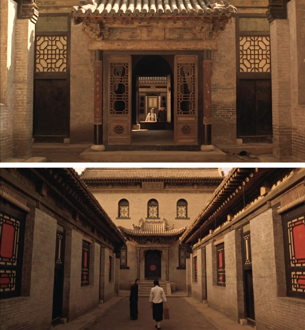Kiều gia Đại viện, một công trình lịch sử có thật với những bức tường rào cao hơn 10 mét, được cấu trúc như một tập hợp các tứ hợp viện (siheyuan), một hình thức kiến trúc mang tính biểu tượng của Trung Hoa. Về bản chất, thiết kế này phản ánh triết lý Nho giáo về trật tự và sự hài hòa, nơi mỗi không gian được phân định rõ ràng theo thứ bậc trong gia đình. Cấu trúc hình chữ “khẩu” (口) hay “nhật” (日) với mục đích ban đầu là để quy tụ, chở che và bao bọc gia đình khỏi những sóng gió bên ngoài. Thế nhưng, dưới nhãn quan của Trương Nghệ Mưu, sự hài hòa có tính triết lý này đã biến thành công cụ của sự giam cầm. Máy quay thường được đặt ở vị trí cố định, nhìn trực diện vào trung tâm, tạo ra những khung hình cân đối hoàn hảo nhưng lại vô cùng lạnh lùng, phi nhân tính. Khung hình đối xứng ấy không mang lại cảm giác yên bình, mà ngược lại, nó gợi lên một trật tự bất biến, một hệ thống quy tắc cứng nhắc áp đặt lên mọi sinh mệnh bên trong.