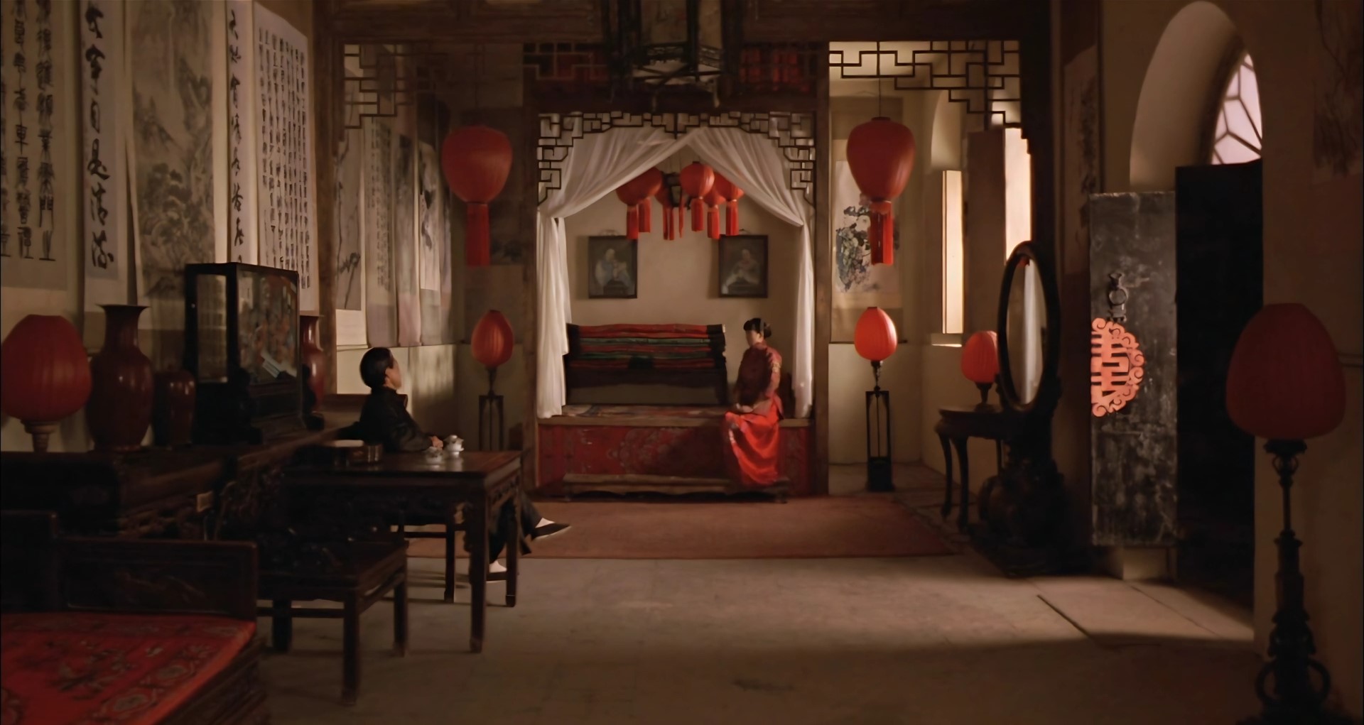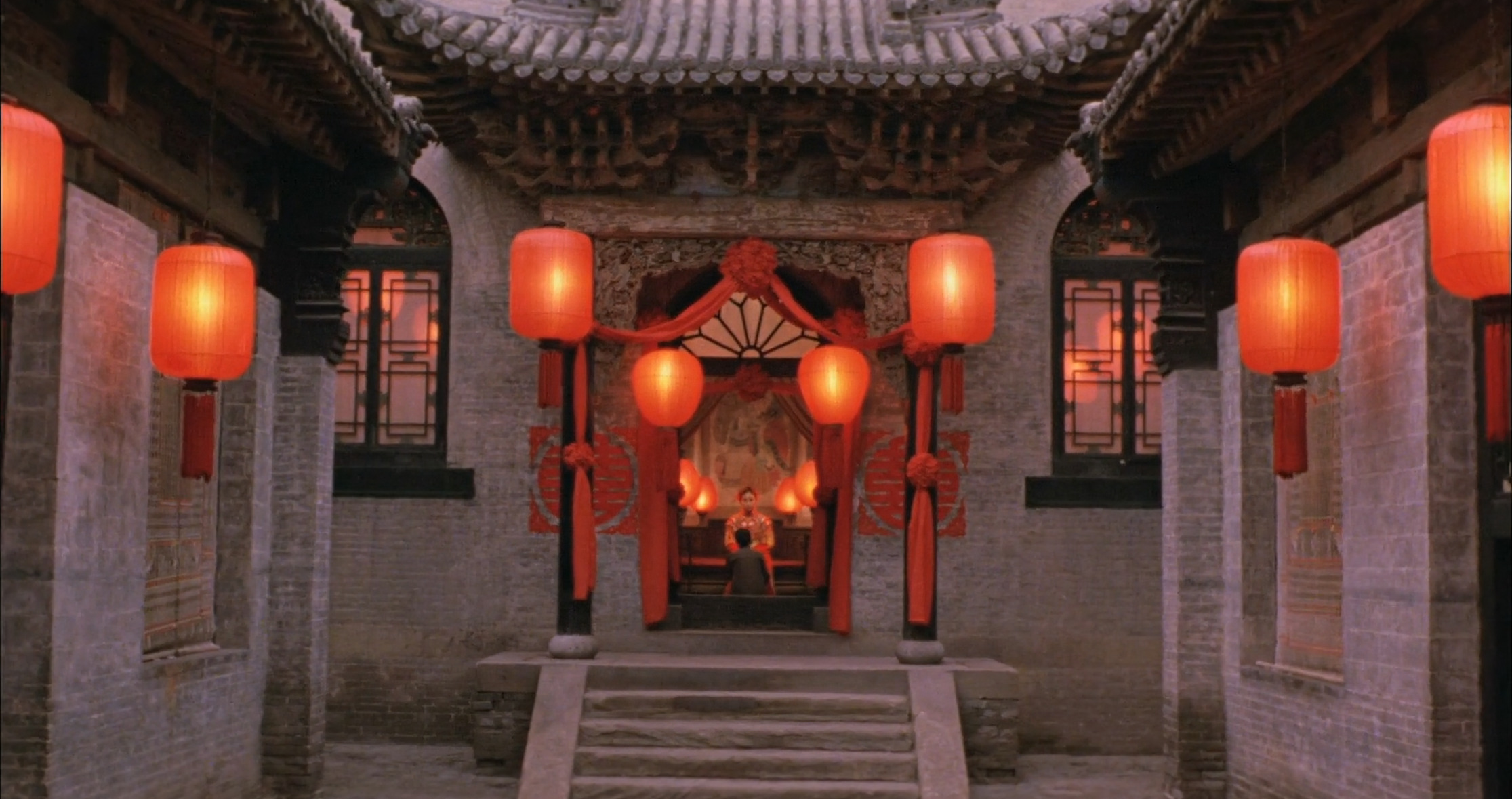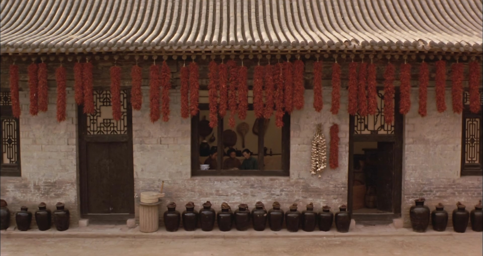 Kiều gia Đại viện, một công trình lịch sử có thật với những bức tường rào cao hơn 10 mét, được cấu trúc như một tập hợp các tứ hợp viện (siheyuan), một hình thức kiến trúc mang tính biểu tượng của Trung Hoa. Về bản chất, thiết kế này phản ánh triết lý Nho giáo về trật tự và sự hài hòa, nơi mỗi không gian được phân định rõ ràng theo thứ bậc trong gia đình. Cấu trúc hình chữ “khẩu” (口) hay “nhật” (日) với mục đích ban đầu là để quy tụ, chở che và bao bọc gia đình khỏi những sóng gió bên ngoài. Thế nhưng, dưới nhãn quan của Trương Nghệ Mưu, sự hài hòa có tính triết lý này đã biến thành công cụ của sự giam cầm. Máy quay thường được đặt ở vị trí cố định, nhìn trực diện vào trung tâm, tạo ra những khung hình cân đối hoàn hảo nhưng lại vô cùng lạnh lùng, phi nhân tính. Khung hình đối xứng ấy không mang lại cảm giác yên bình, mà ngược lại, nó gợi lên một trật tự bất biến, một hệ thống quy tắc cứng nhắc áp đặt lên mọi sinh mệnh bên trong.