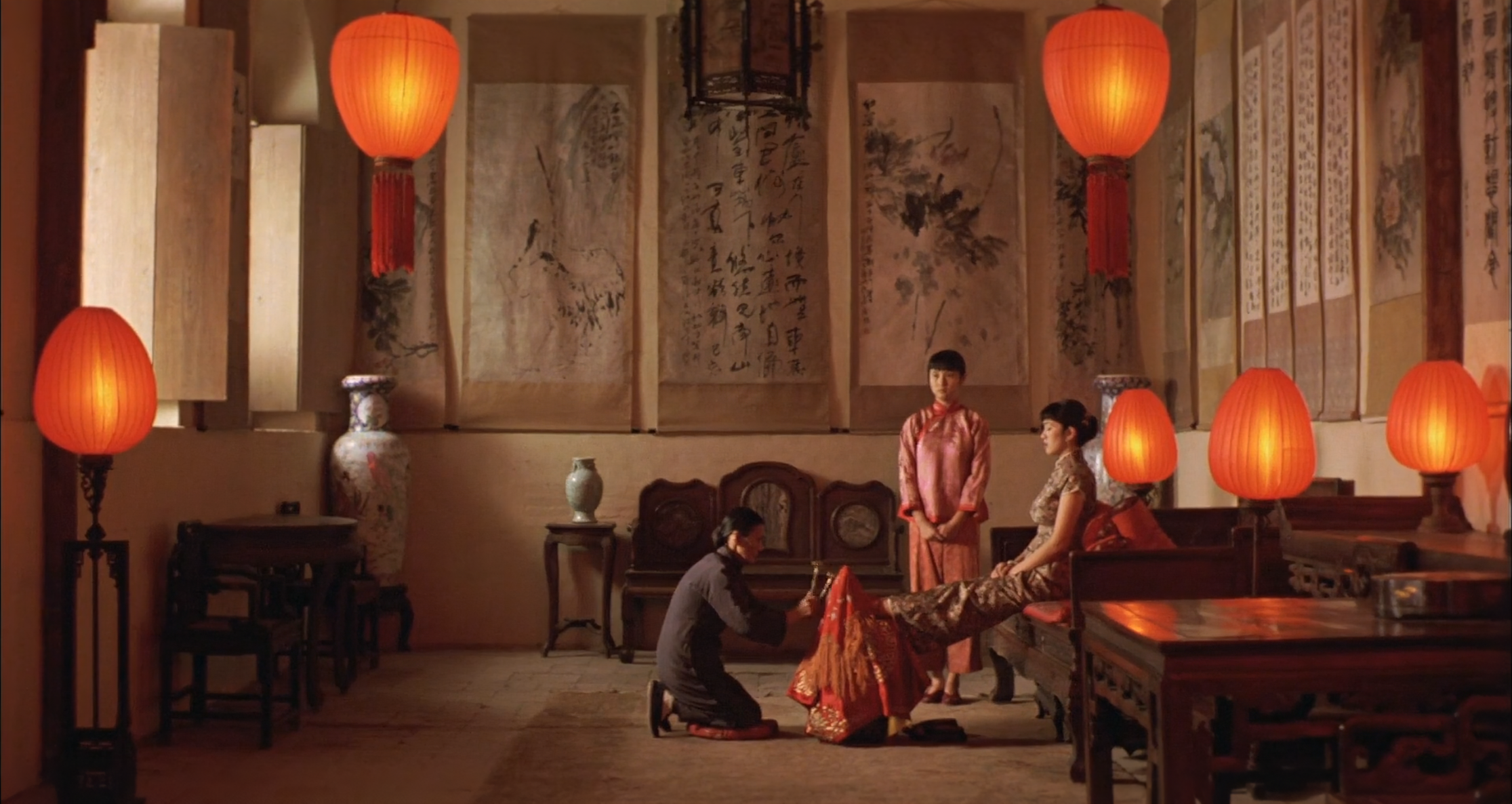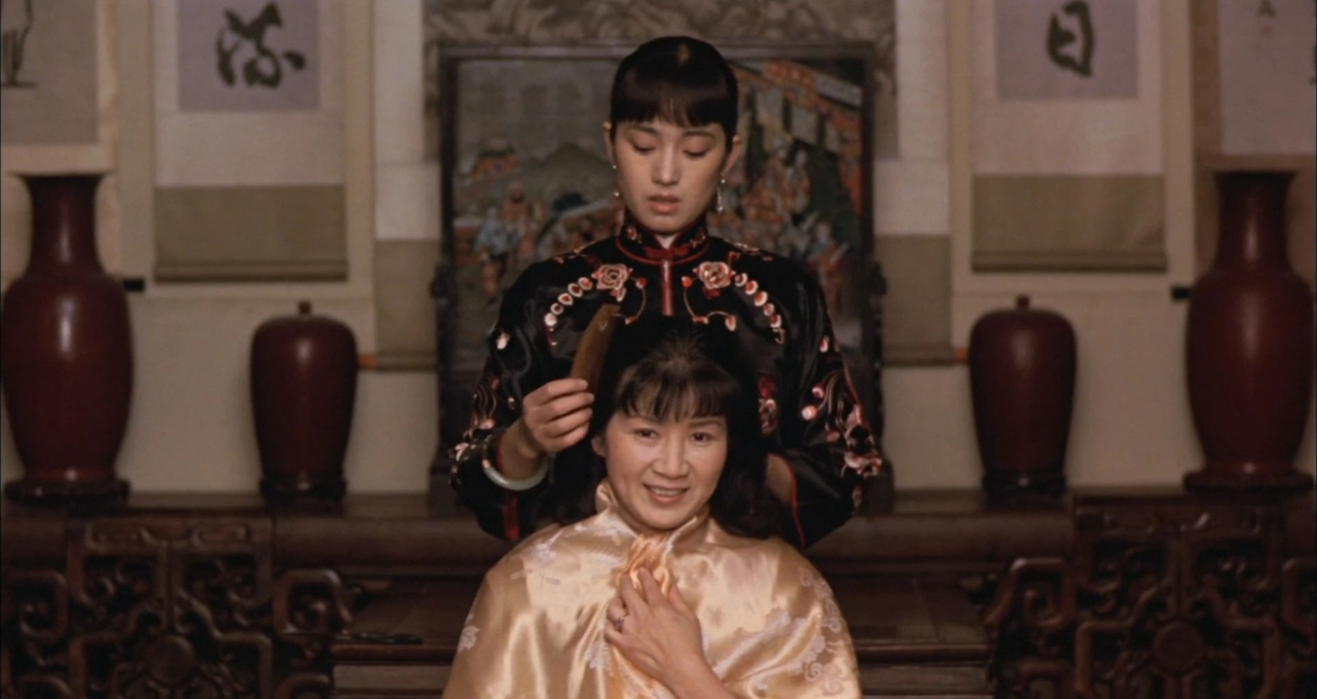 Bộ phim không mở đầu bằng một đại cảnh hoành tráng, mà bằng cận cảnh gương mặt của Tùng Liên (Củng Lợi), một nữ sinh 19 tuổi có học thức, buộc phải từ bỏ con đường học vấn để gả làm vợ tư cho một lão gia giàu có. Gương mặt ấy nhìn thẳng vào máy quay, một cái nhìn mang theo cả sự thách thức lẫn nỗi tuyệt vọng. Ngay sau đó, cánh cửa đầu tiên mở ra, cánh cổng uy nghi của Trần phủ. Cánh cổng ấy không chỉ là một lối vào vật lý, nó là một ranh giới biểu tượng, ngăn cách thế giới bên ngoài – nơi có tự do dù nghèo khó, với một vũ trụ khép kín bên trong – một nơi có luật lệ, nghi thức, và kiến trúc của riêng nó. Khoảnh khắc Tùng Liên bước qua ngưỡng cửa đó, cô không chỉ gia nhập một gia tộc, mà còn bị giam hãm trong một cấu trúc được thiết kế để bào mòn và đồng hóa nhân dạng.