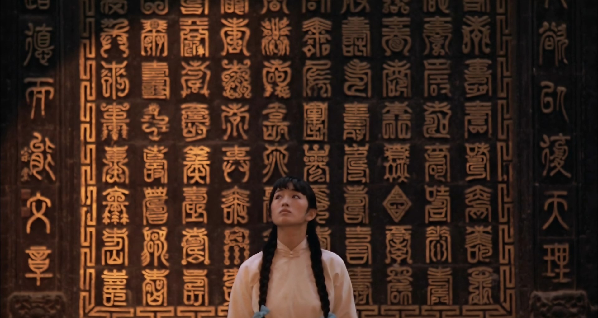 Nếu kiến trúc là nhà tù, thì các góc máy của đạo diễn hình ảnh Triệu Phi chính là một nhãn quan cai ngục lạnh lùng, có tính giám sát. Ông ưa chuộng những góc quay rộng với tiêu cự sâu, khiến cho không gian kiến trúc hùng vĩ liên tục choán lấy màn hình. Giữa khung hình kiến trúc đồ sộ ấy, các nhân vật bị thu nhỏ lại, trông như những sinh thể nhỏ bé, bất lực. Thêm vào đó, máy quay thường được đặt ở một khoảng cách xa, cứng nhắc và chính diện, tạo ra một góc nhìn lạnh lùng, vô cảm. Nó giống như con mắt của một hệ thống an ninh đang lặng lẽ chuyển kênh giám sát, từ đó nhấn mạnh cảm giác về một sự kiểm soát toàn diện, có hệ thống. Thủ pháp “khung trong khung” (frame within a frame) được lặp đi lặp lại một cách có chủ đích. Những ô cửa, mái vòm hay lưới mắt cáo vô tình tạo thành những chiếc lồng bằng hình ảnh, giam cầm các nhân vật trong tầng tầng lớp lớp không gian.