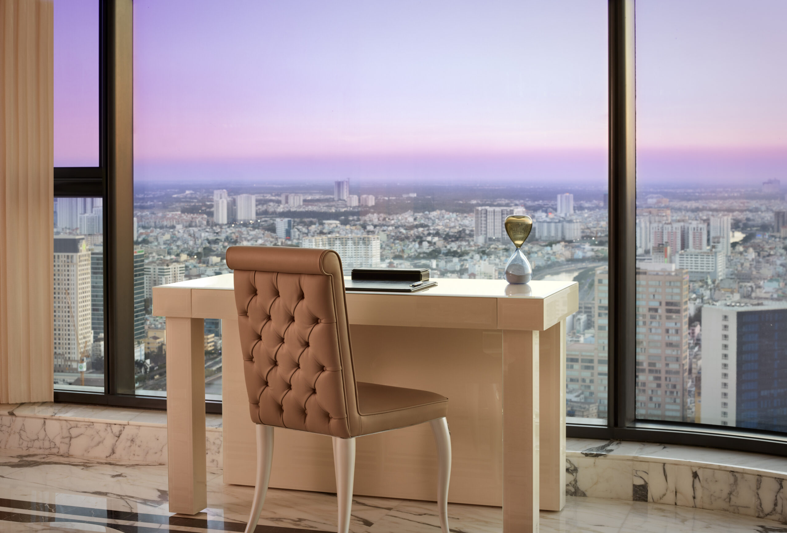 Đặc biệt hơn, khi lưu trú tại The Saigon Suite, du khách sẽ được tận hưởng trọn vẹn các tiện ích đẳng cấp, từ phòng tắm rộng rãi và khu vực ăn uống riêng tư cho đến tủ bar Isidoro do Jean-Marie Massaud thiết kế. Phòng ngủ thoáng đãng mở ra góc nhìn ôm trọn khoảnh khắc bình minh lẫn hoàng hôn của thành phố, mang đến trải nghiệm lưu trú cao cấp và đáng nhớ.