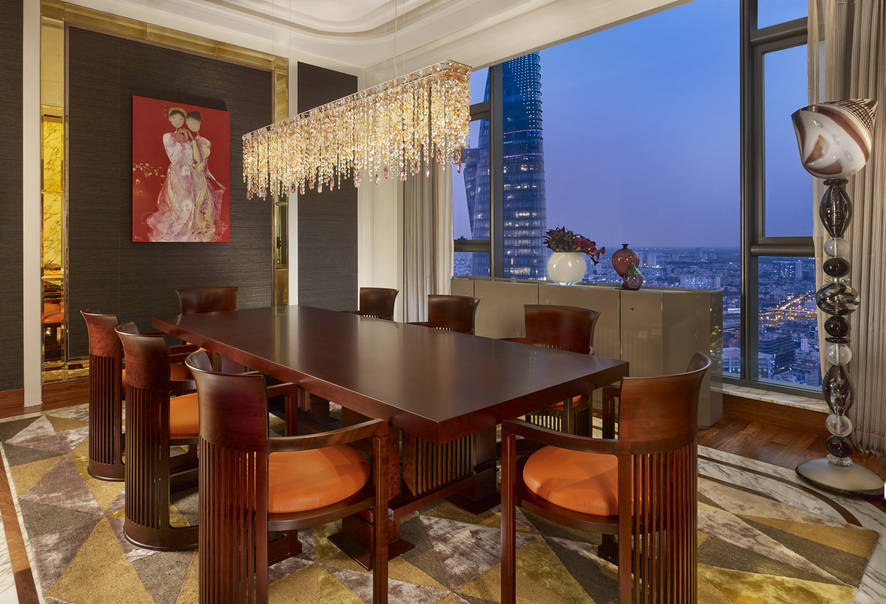 Nếu như Reverie Romance Suite và Designer Suite by Visionnaire là những bản sonata du dương, thì căn phòng The Saigon Suite là một bản vĩ thanh rực rỡ. Tọa lạc tại hai tầng cao nhất của khách sạn, với tổng diện tích 276 mét vuông, sắc cam nâu ấm của The Saigon Suite hòa cùng sức sống của đô thị Sài Gòn, tạo nên một không gian thượng lưu vừa sang trọng cổ điển vừa năng động hiện đại. Những tuyệt tác nội thất của các bậc thầy thiết kế đều hội tụ tại căn phòng này, biến The Saigon Suite thành lựa chọn lý tưởng cho những du khách yêu nghệ thuật hoặc những ai tìm kiếm trải nghiệm lưu trú mang tính biểu tượng.