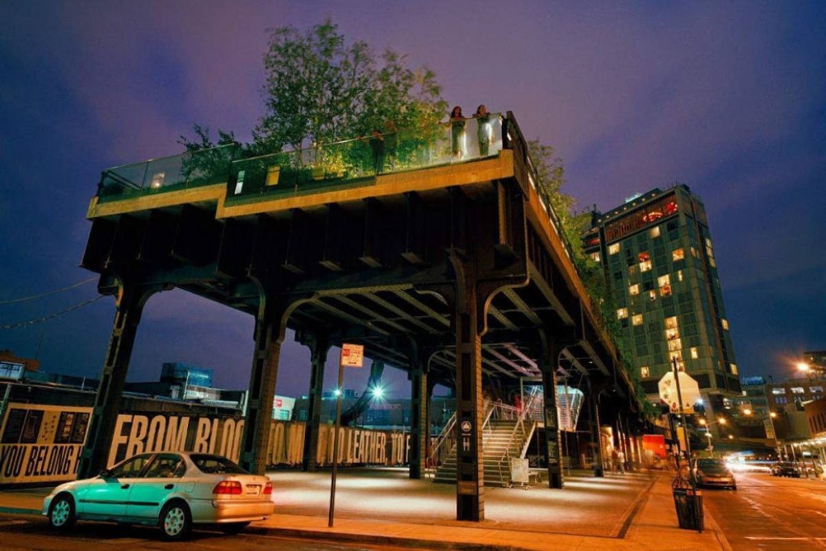 - công viên The High Line (New York) đã sử dụng gỗ tái chế từ đường sắt cũ