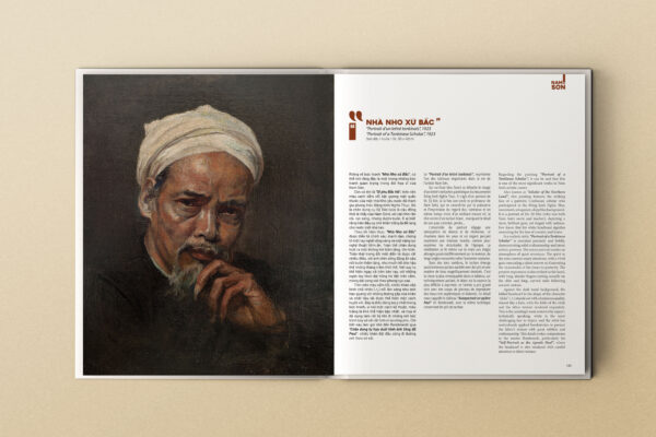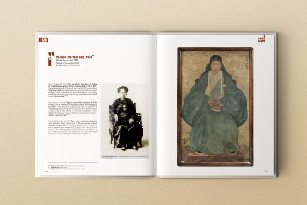 Hai trang trong tác phẩm “NAM SƠN (1899–1973), Di sản Mỹ thuật Đông Dương qua tư liệu, lưu trữ và báo chí” thể hiện một tác phẩm nổi bật của họa sư Nam Sơn, “Chân dung mẹ tôi”.