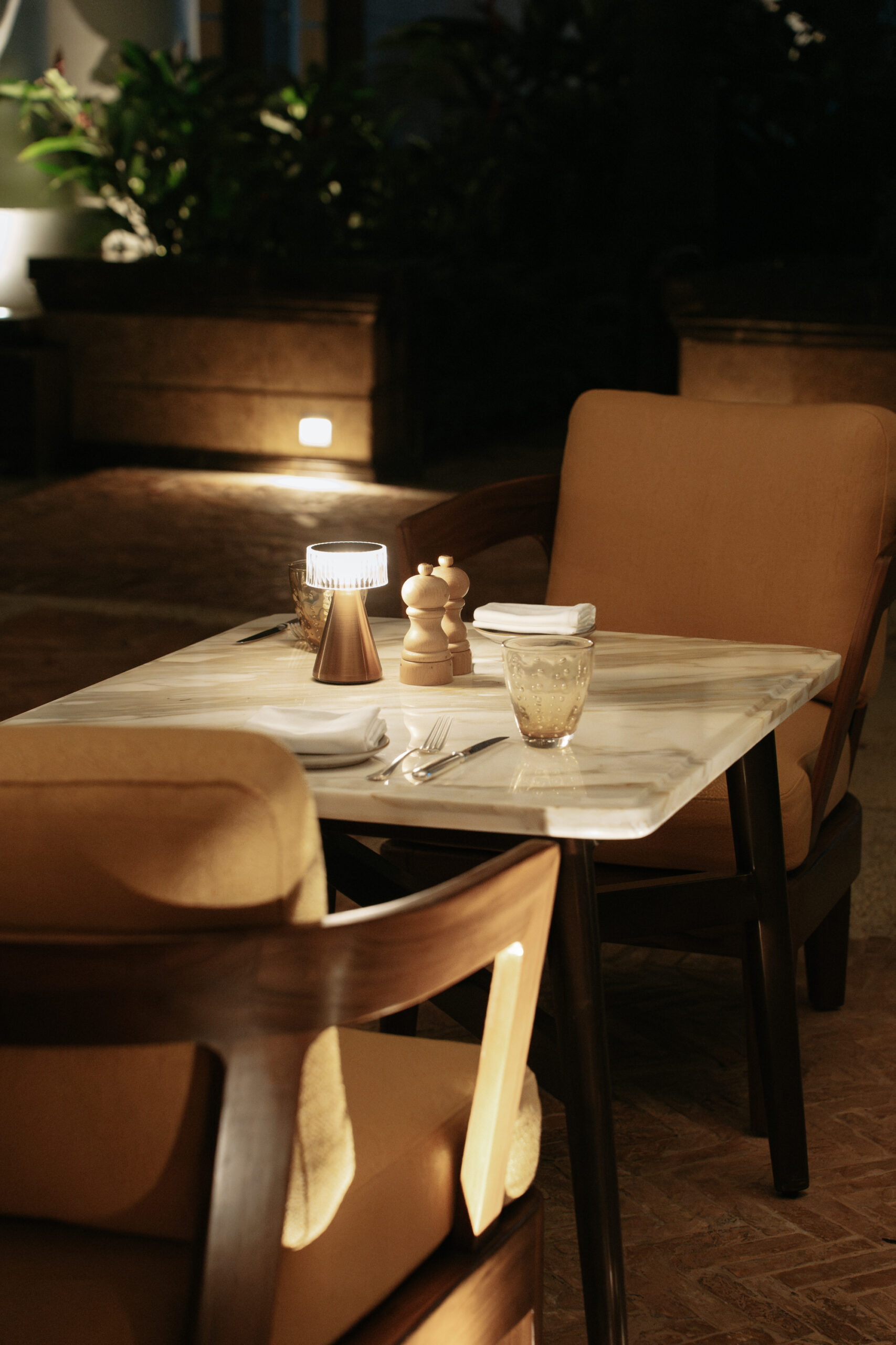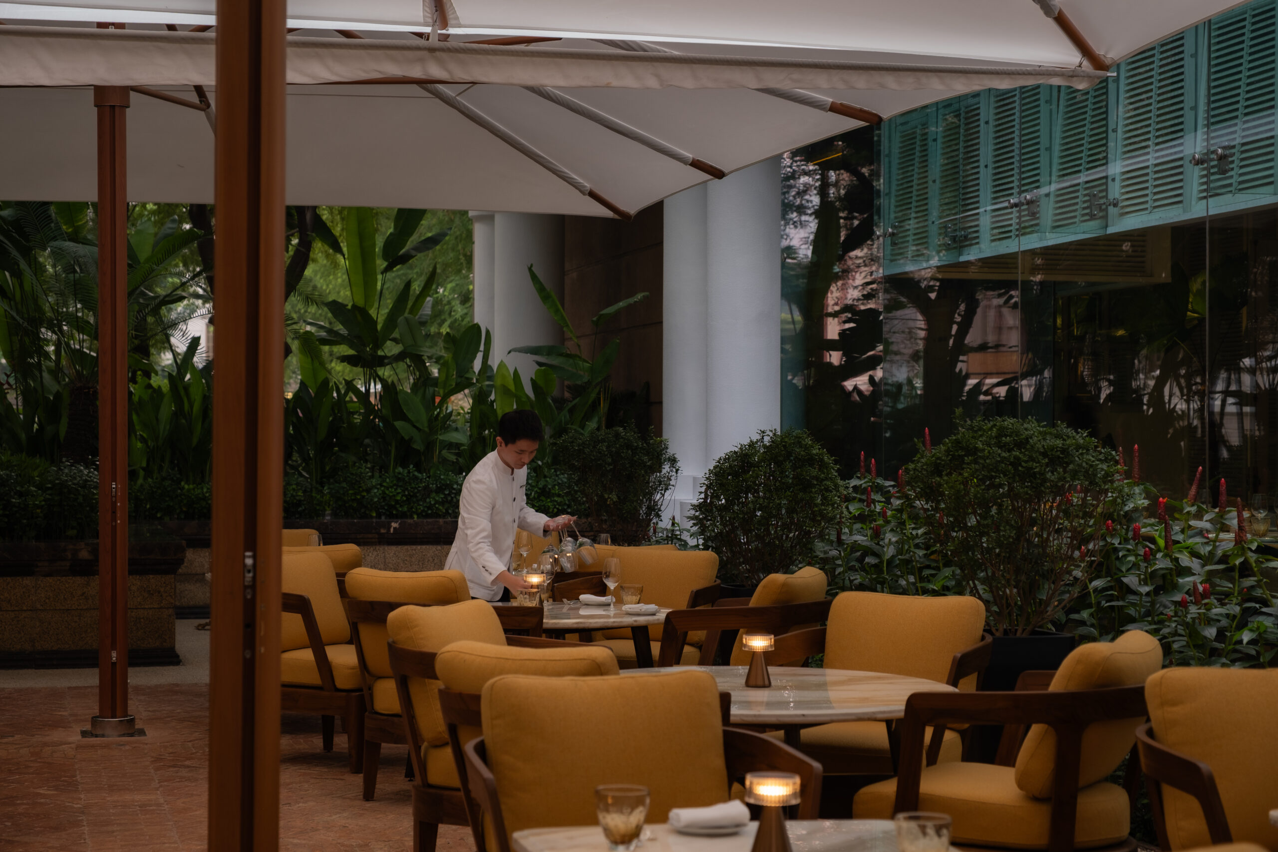 Khi trưa đến, bầu không khí trở nên cởi mở và sống động hơn. Terrace được thiết kế lý tưởng cho những bữa trưa kéo dài – nơi ánh sáng tự nhiên trải nhẹ trên bàn ăn và câu chuyện có thể thong thả nối dài đến tận buổi chiều. Định hướng ẩm thực vẫn đặt nền tảng trên tinh hoa ẩm thực Ý, với những món ăn theo mùa, nguyên liệu thượng hạng cùng tinh thần giao hòa, thanh lịch. Sunday brunch của khách sạn cũng tìm thấy một “ngôi nhà” rất tự nhiên tại đây, được tái hiện trong không gian ngoài trời với cảm giác tinh tế và gợi cảm hứng hơn hẳn so với trải nghiệm brunch thường thấy trong thành phố.