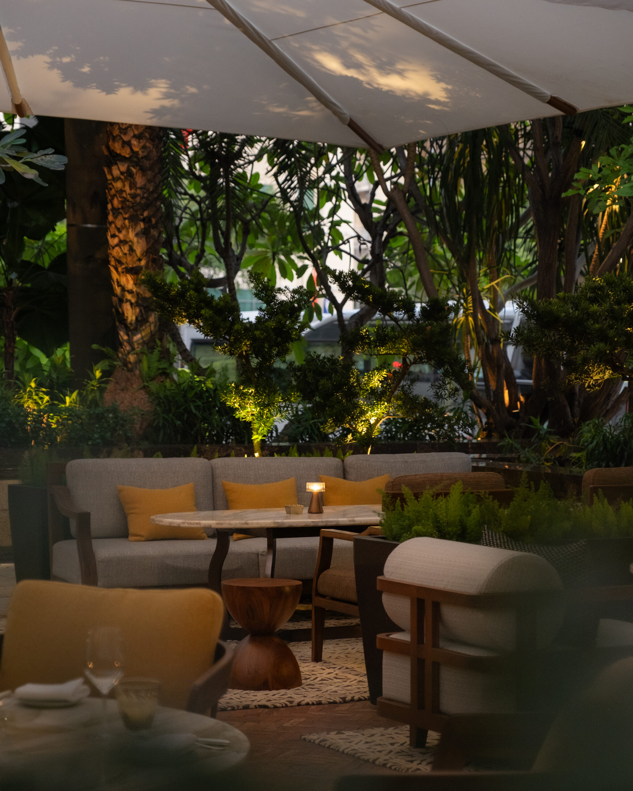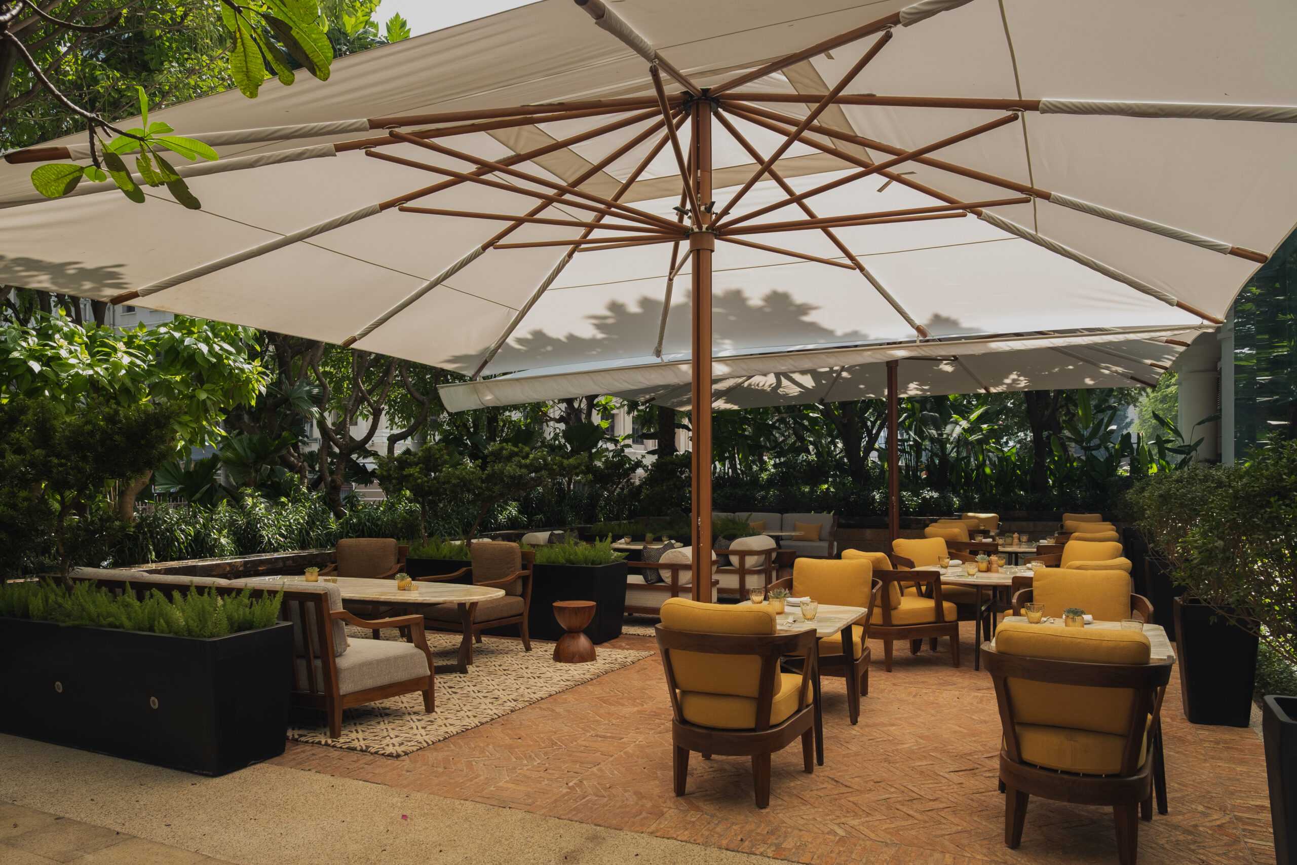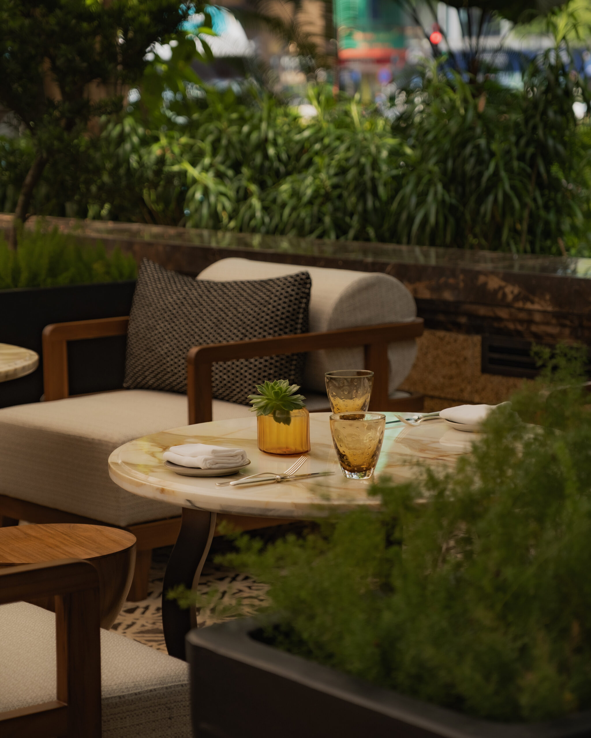 Ẩn mình trong một góc xanh tươi mát của khách sạn, Park Hyatt Terrace mở ra không gian thanh bình và đầy riêng tư, nơi trải nghiệm ẩm thực được nâng tầm một cách tinh tế. Khái niệm của không gian được xây dựng với chủ đích tạo cảm giác thư thái: mảng xanh, ánh sáng dịu được lọc qua tán cây, bề mặt đá marble cùng mái che kiến trúc hòa quyện để tạo nên cảm giác như một ốc đảo đô thị riêng tư, thay vì một venue khách sạn theo lối thông thường. Theo nhiều cách, đây là không gian được thiết kế dành cho những thói quen hưởng thụ xa xỉ hiện đại – nơi cà phê có thể kéo dài thành bữa trưa, bữa trưa nối tiếp bằng những ly thức uống chiều muộn, rồi chuyển mình thành bữa tối mà không cần phải đổi địa điểm.