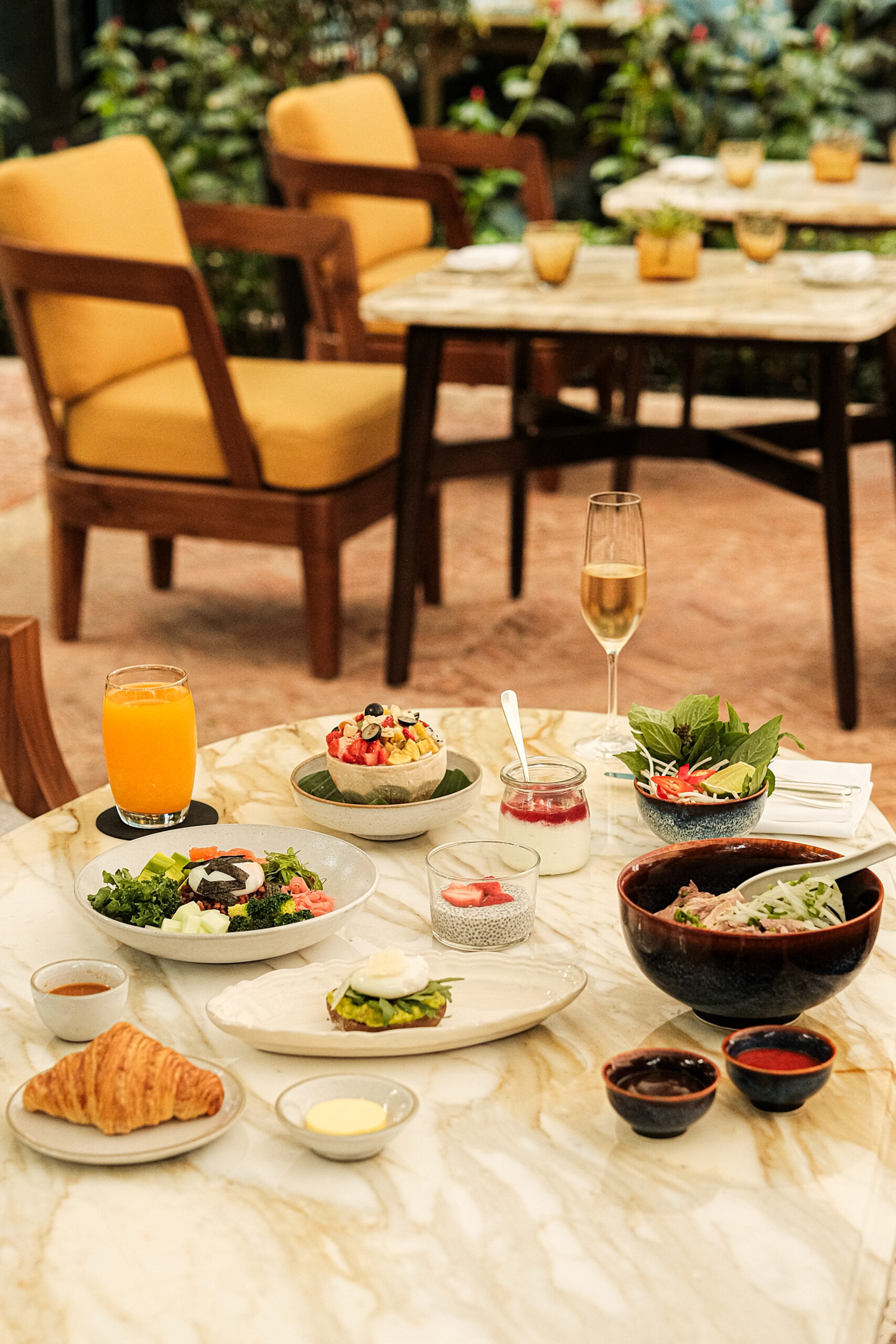 Buổi sáng tại đây bắt đầu với Opera’s Park Breakfast, được phục vụ trong một khung cảnh yên bình hiếm thấy giữa trung tâm Sài Gòn. Trải nghiệm bữa sáng kết hợp giữa buffet chọn lọc và các món được chế biến theo yêu cầu, bao gồm các món trứng làm theo sở thích, bánh ngọt cùng phở Việt Nam nấu nóng theo order. Đây là kiểu trải nghiệm bữa sáng ưu tiên sự tinh tế và tận hưởng nhẹ nhàng hơn là sự phô trương, được nâng tầm bởi cà phê pha bởi barista, nước ép tươi và phong cách phục vụ chỉn chu, kín đáo vốn là dấu ấn của Park Hyatt.