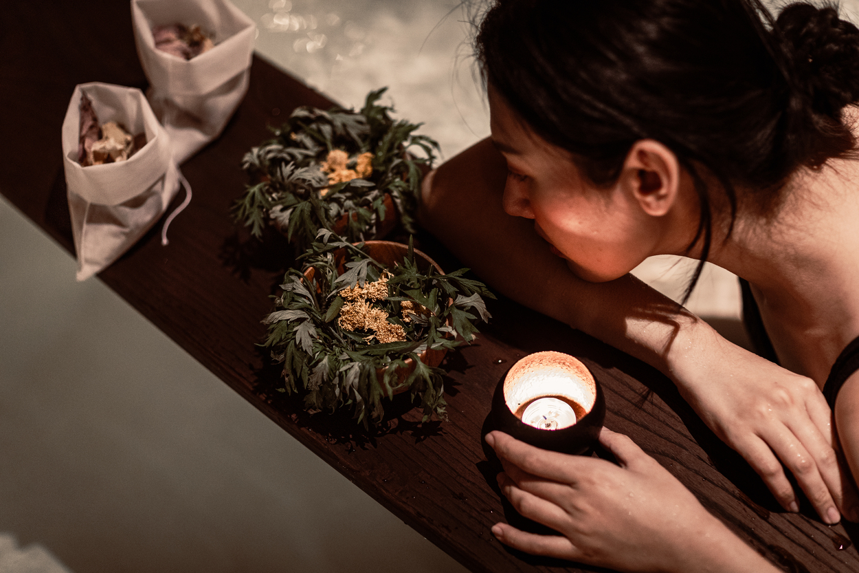Xông hơi hammam với thảo mộc, kết hợp Vichy Shower trong 30 phút.