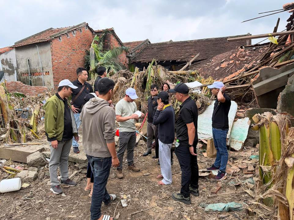 Ông Phạm Văn Hiến cùng đội ngũ quản lý của tập đoàn đến tận nơi thăm hỏi, động viên người dân chịu ảnh hưởng mưa lũ