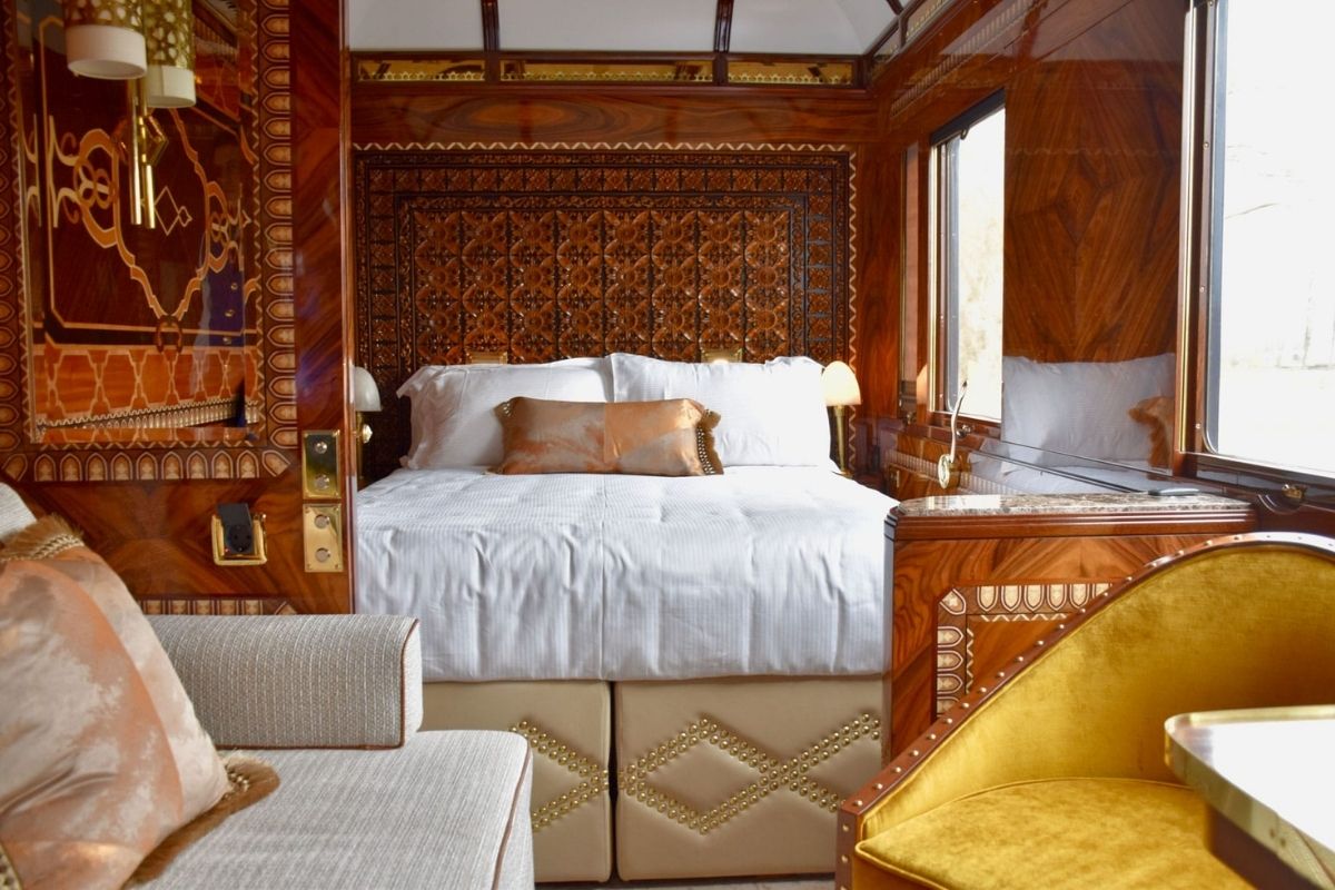 Bên trong, những khoang tàu được bài trí như một khách sạn boutique cổ điển, đỉnh cao là L’Observatoire Suite với cửa sổ toàn cảnh, phòng tắm riêng và nội thất bọc gỗ quý hiếm. Dịch vụ trên tàu được chăm chút đến từng chi tiết, từ bữa tối thịnh soạn được phục vụ bằng bộ chén bạc cổ, đến rượu champagne rót trong ánh đèn vàng ấm áp của toa ăn uống.
